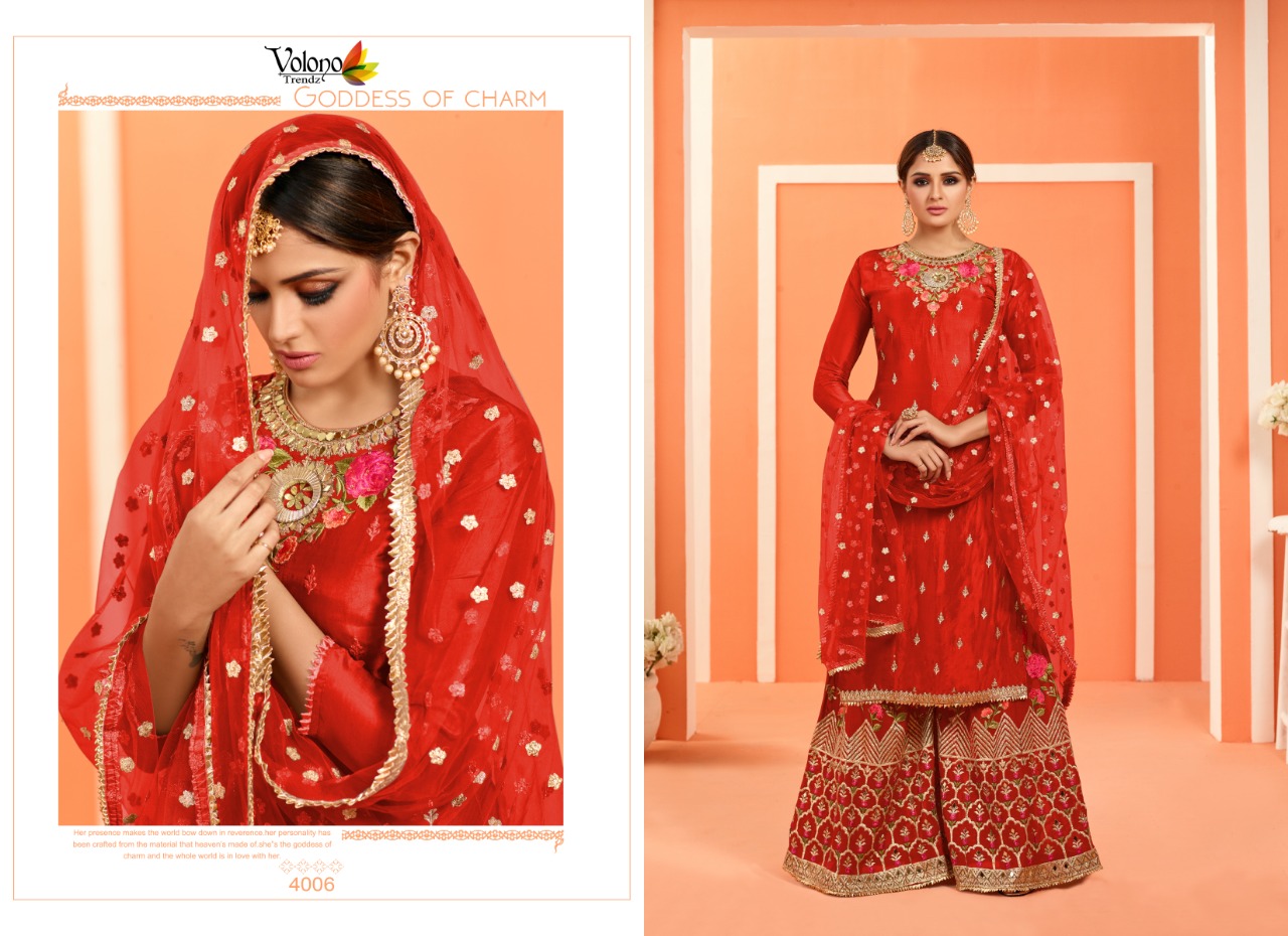 Volono Trendz Dulhan Vol 4 Georgette Bridal And Karwa Choth Special Sarara Style Suit