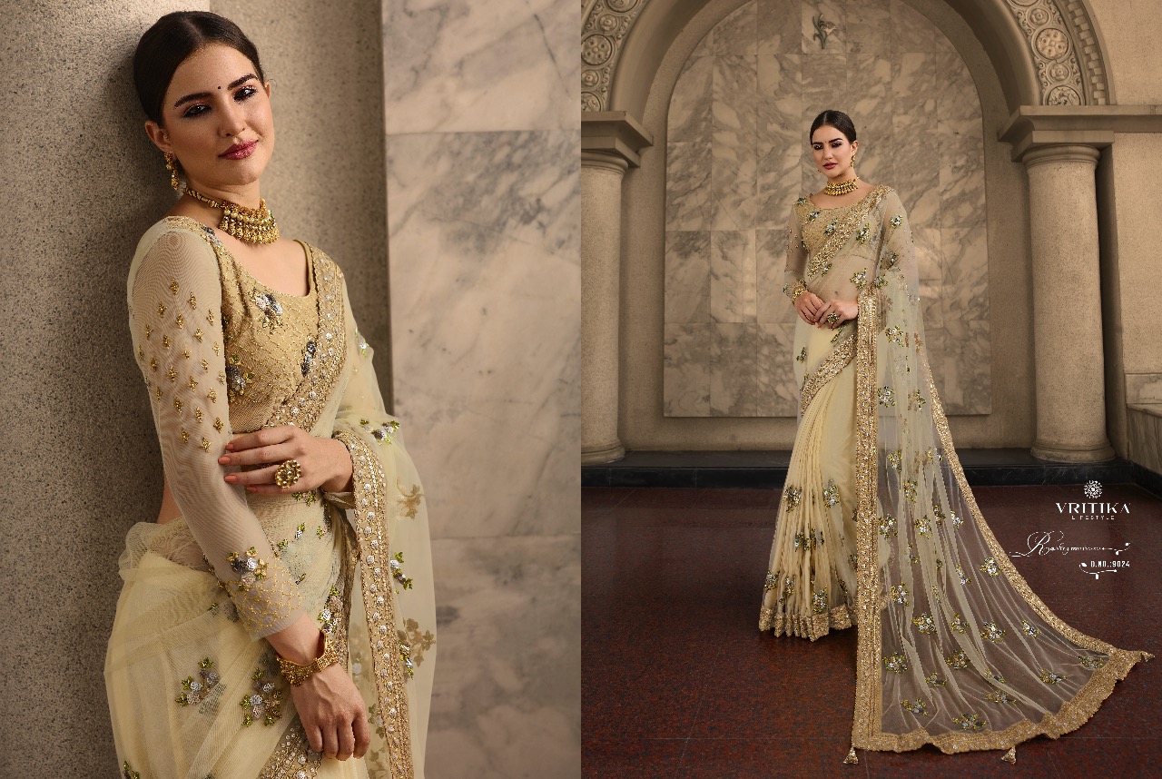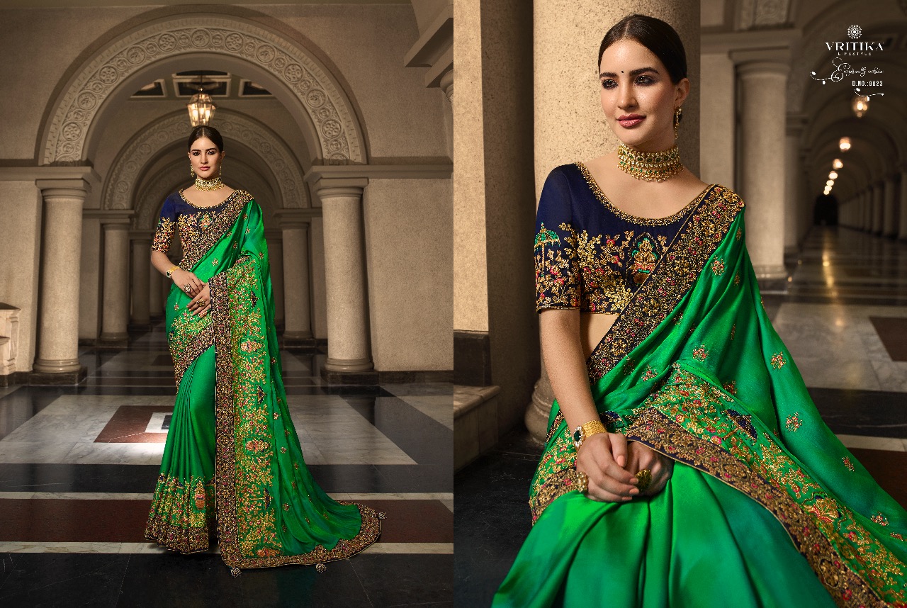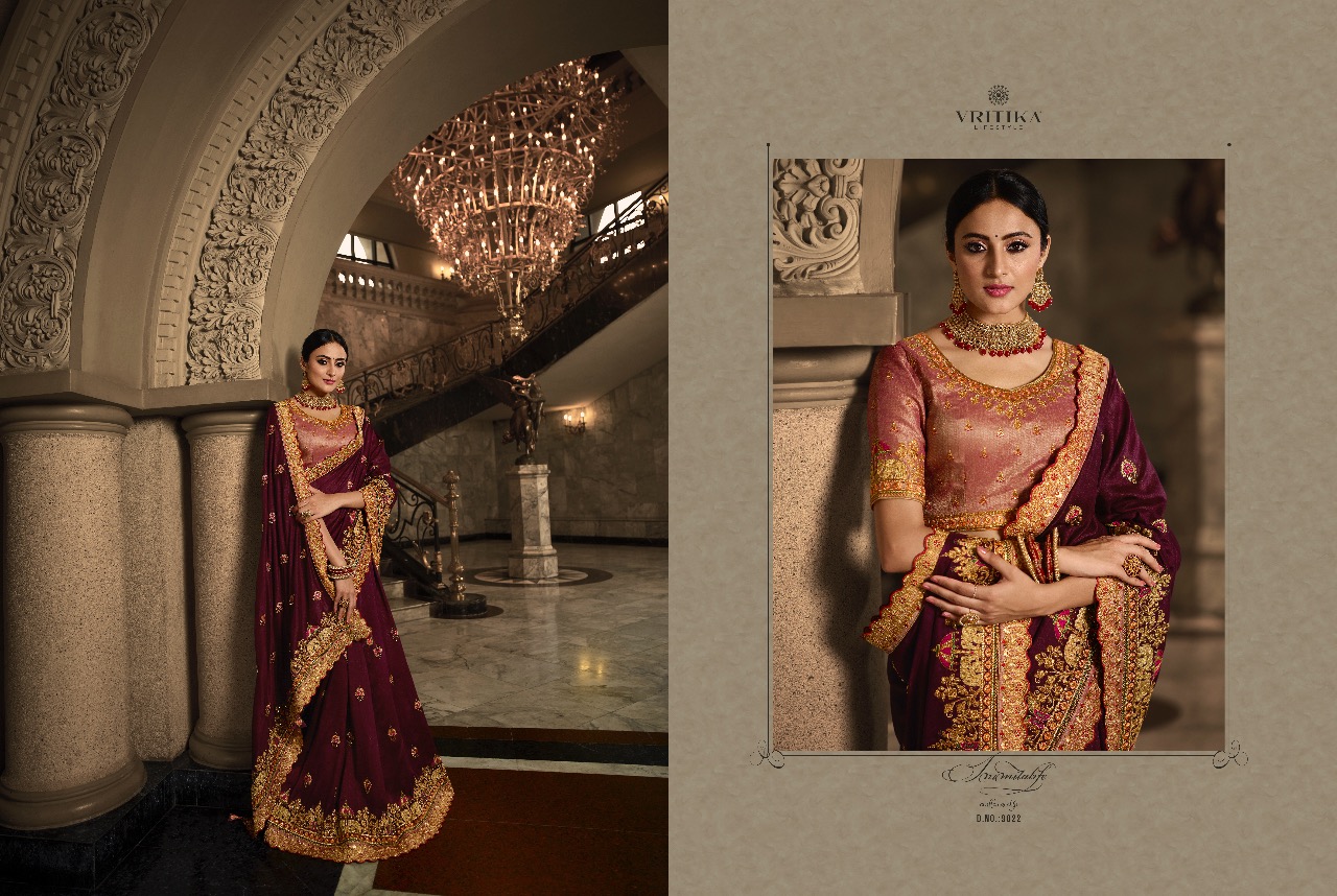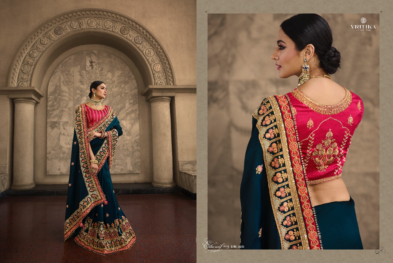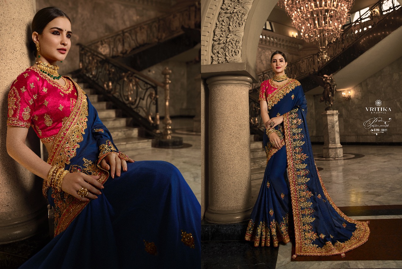 Brand - VRITIKA LIFESTYLE . Catlog name - PALASH VOL 2. Series -9021 to 9027. Rate ~ 3495/-₹ pc ~ 07 INDIAN DESIGNER BRIDAL COLLECTION OF SAREES GST 5 Percent Extra Delivery 3-4 DAYS |
