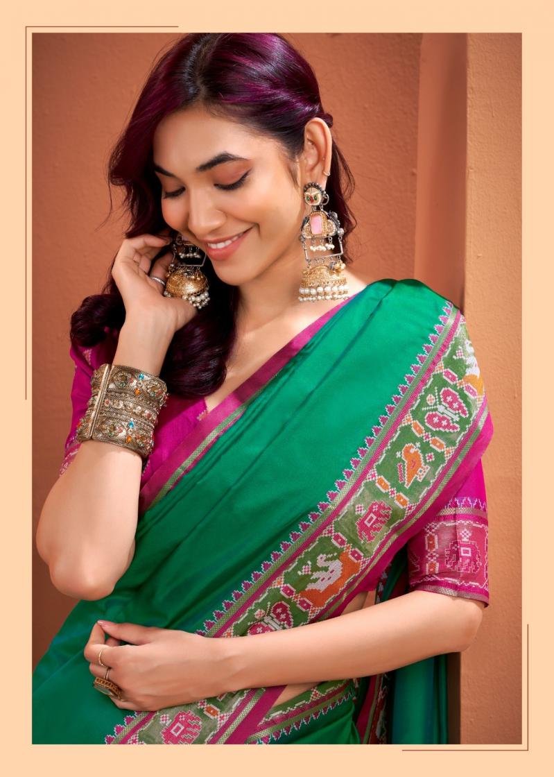 Elegance personified silk meets vibrant Patola Design, creating a stunning combination,Sophisticated charm Weaving On silk, perfect for making a statement. Brand - Rajpath Catalog Name -Vrundavn Silk Series :- 468 To 473 Rate : 1095/- +5%GST Fabric : Silk With Patola Weaving Pallu Or Attractive Border Design Blouse : Contrast Design Blouse Occasion: Party Wear, Festival Wear |