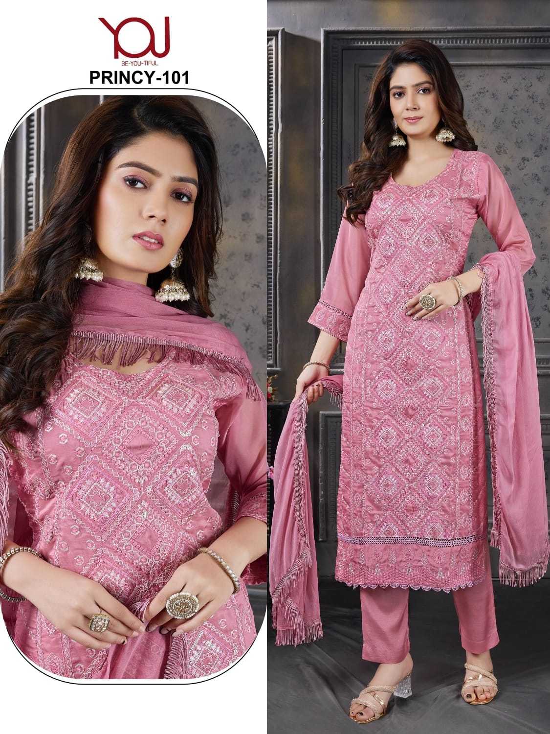 Princy 865/- M to 5xl Heavy organza silk fabric with Fancy Karachi work collection |