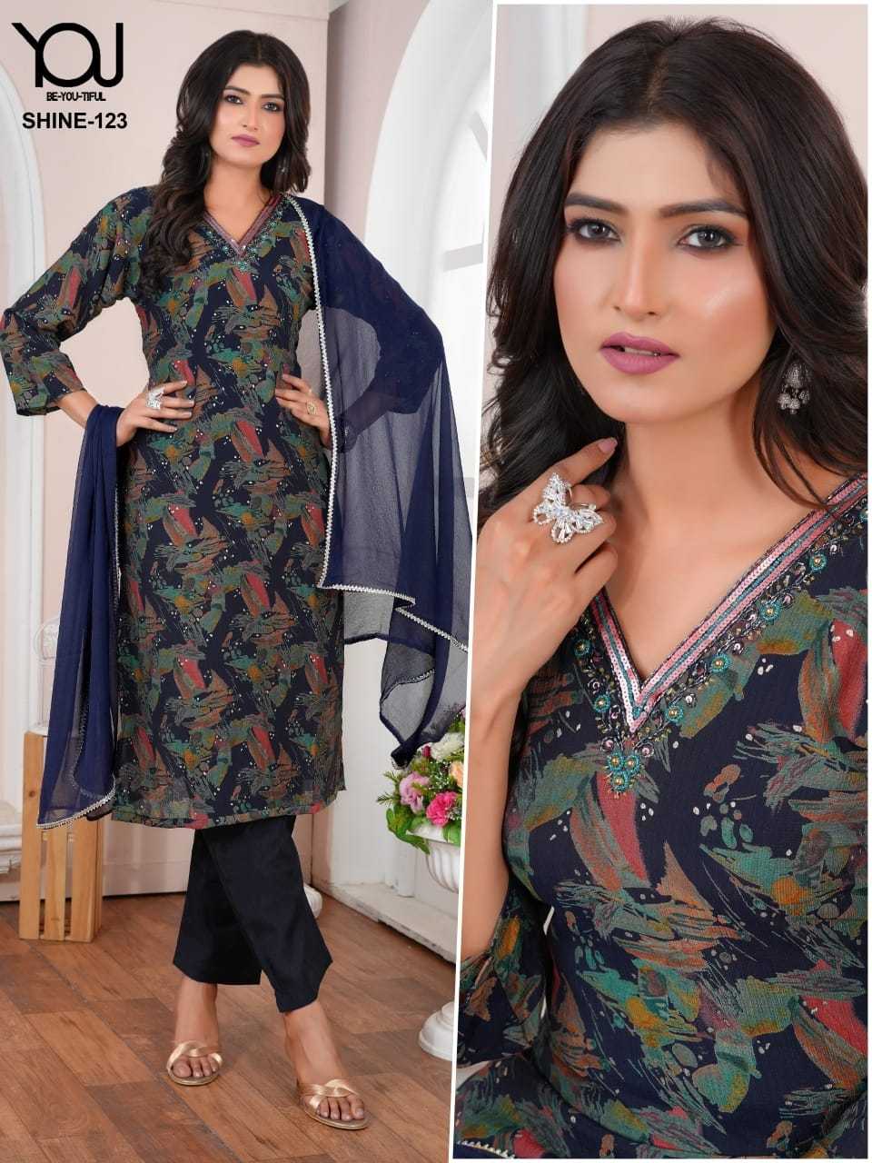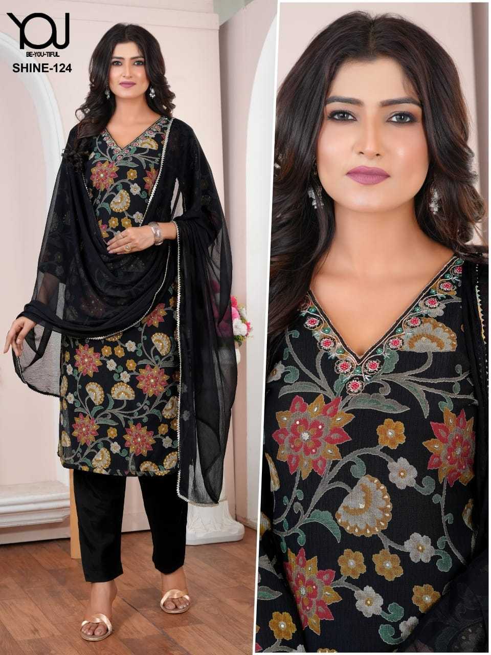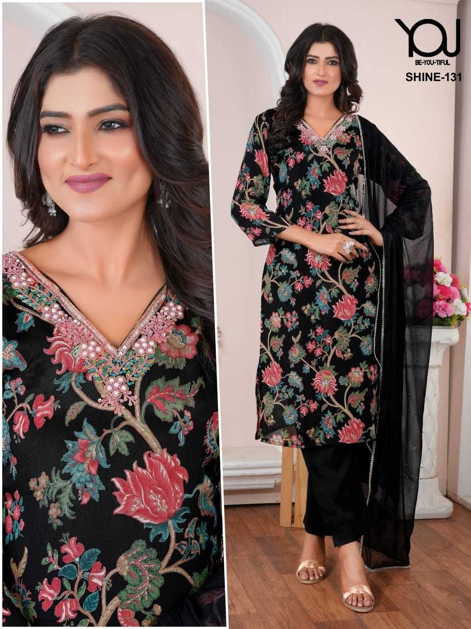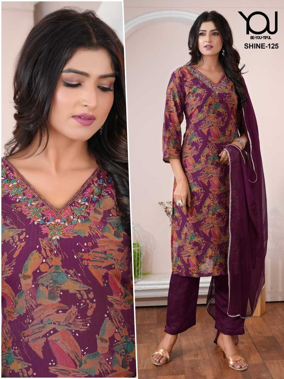 wanna shine elegant look chinon fancy straight cut readymade 3 pcs set collection