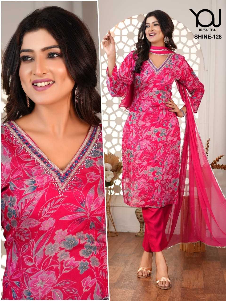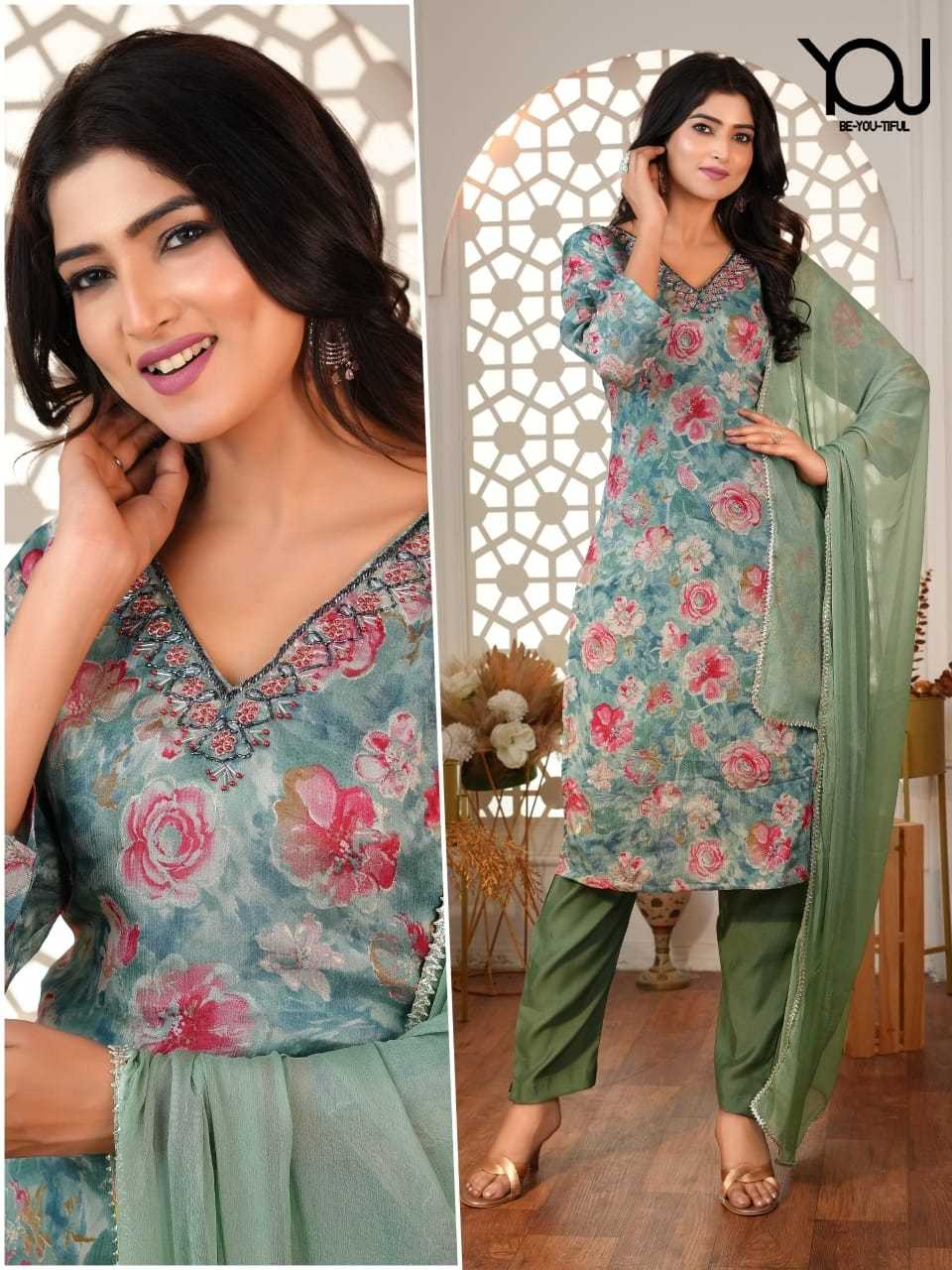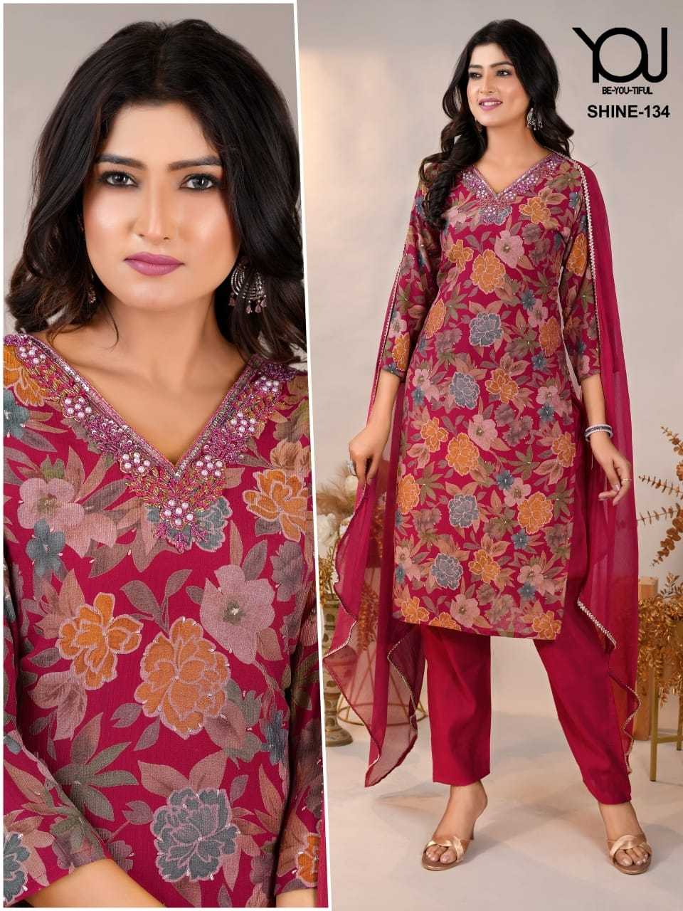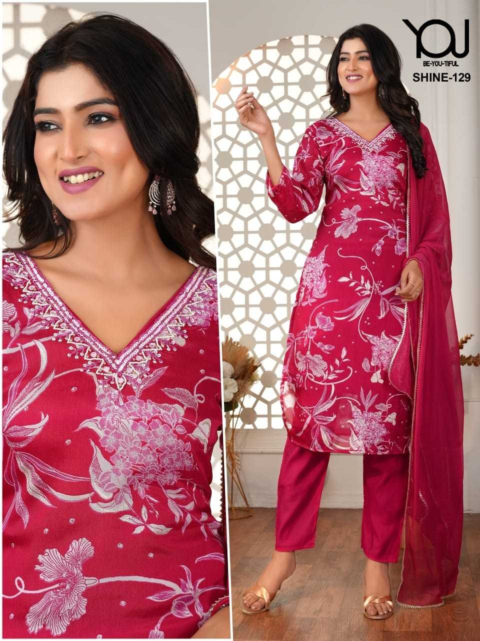 wanna shine elegant look chinon fancy straight cut readymade 3 pcs set collection