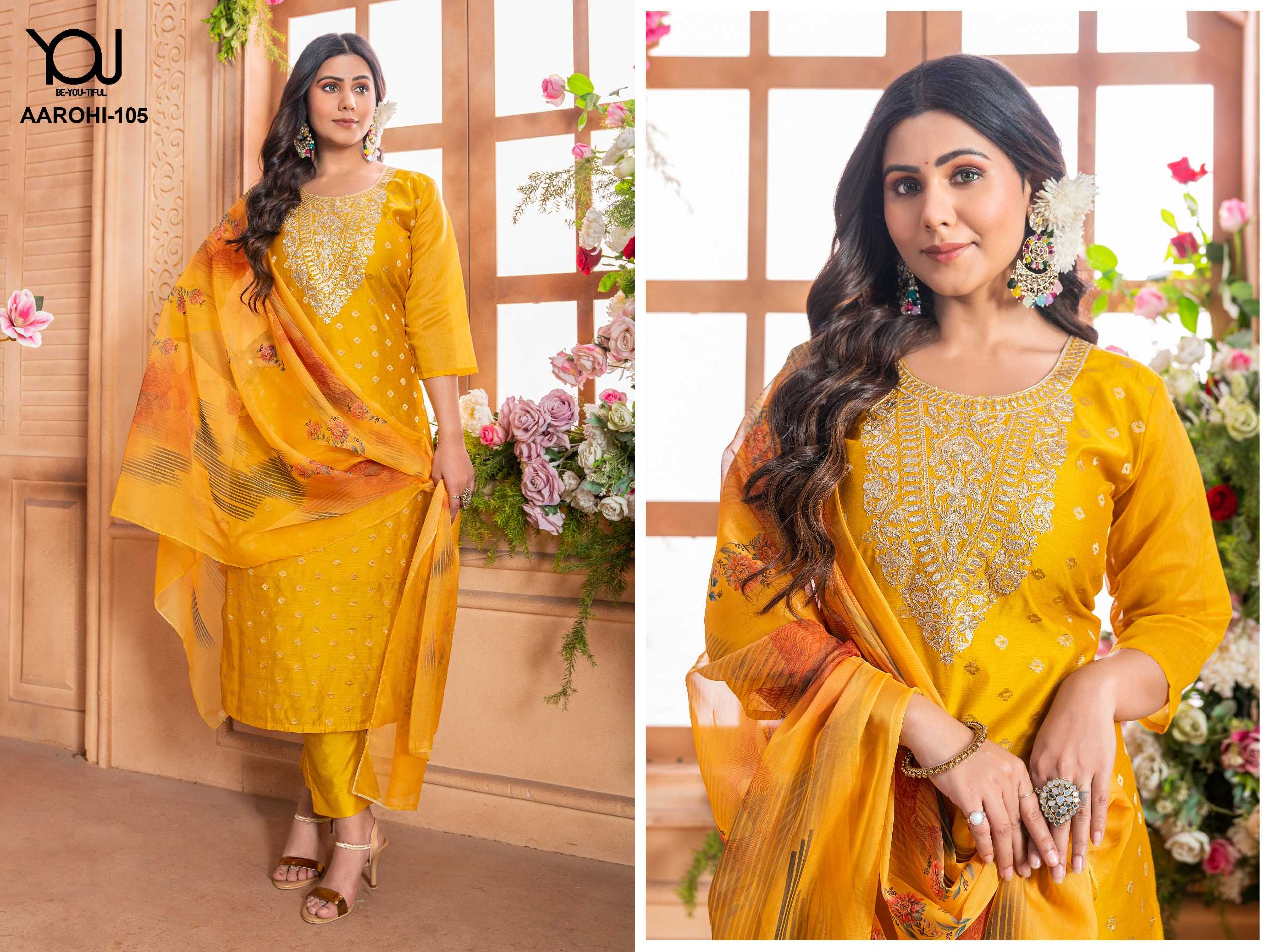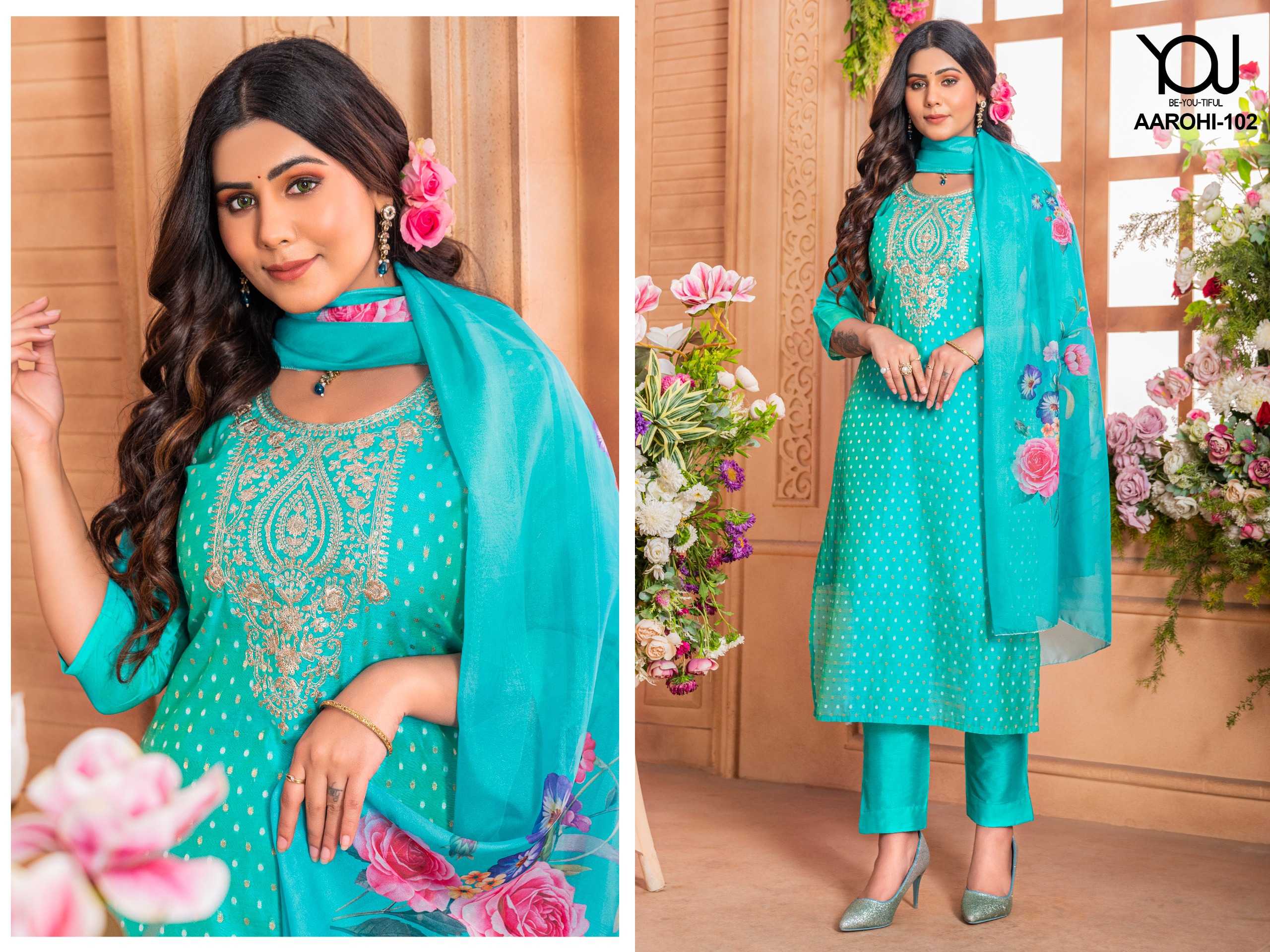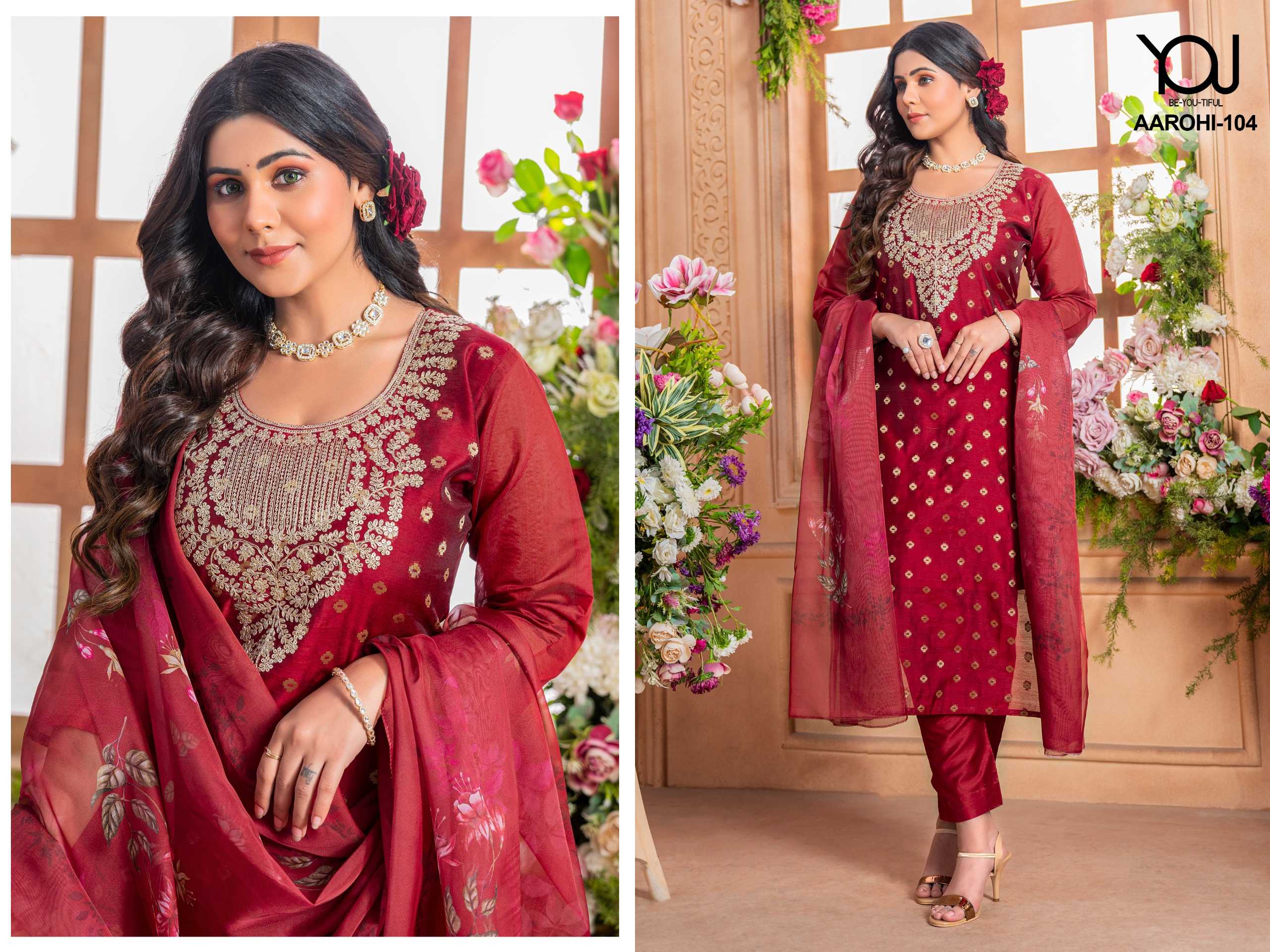 wanna you aarohi 101-106 fullstitch chanderi silk kurti pant with organza print dupatta combo set