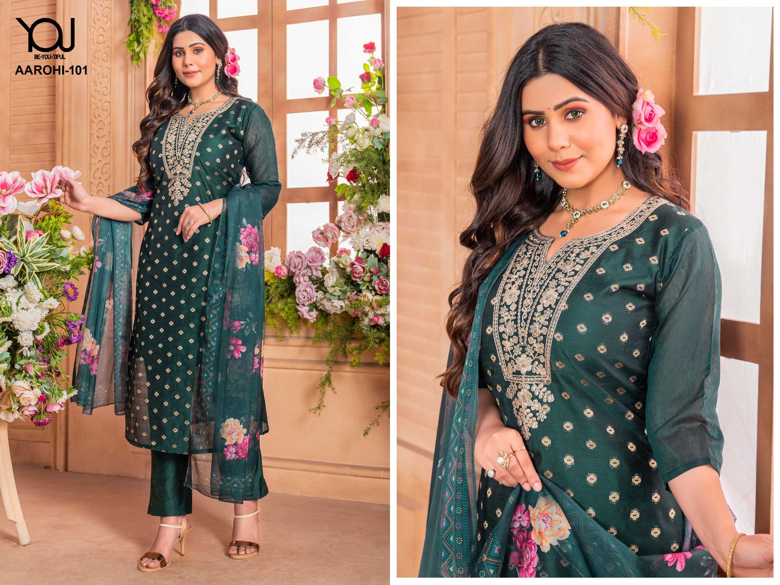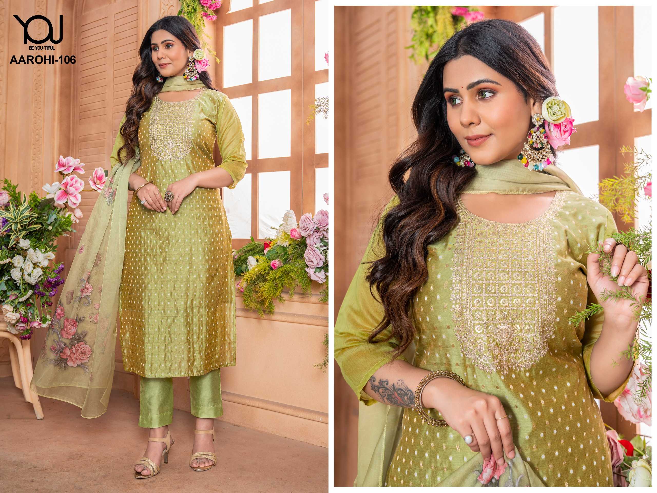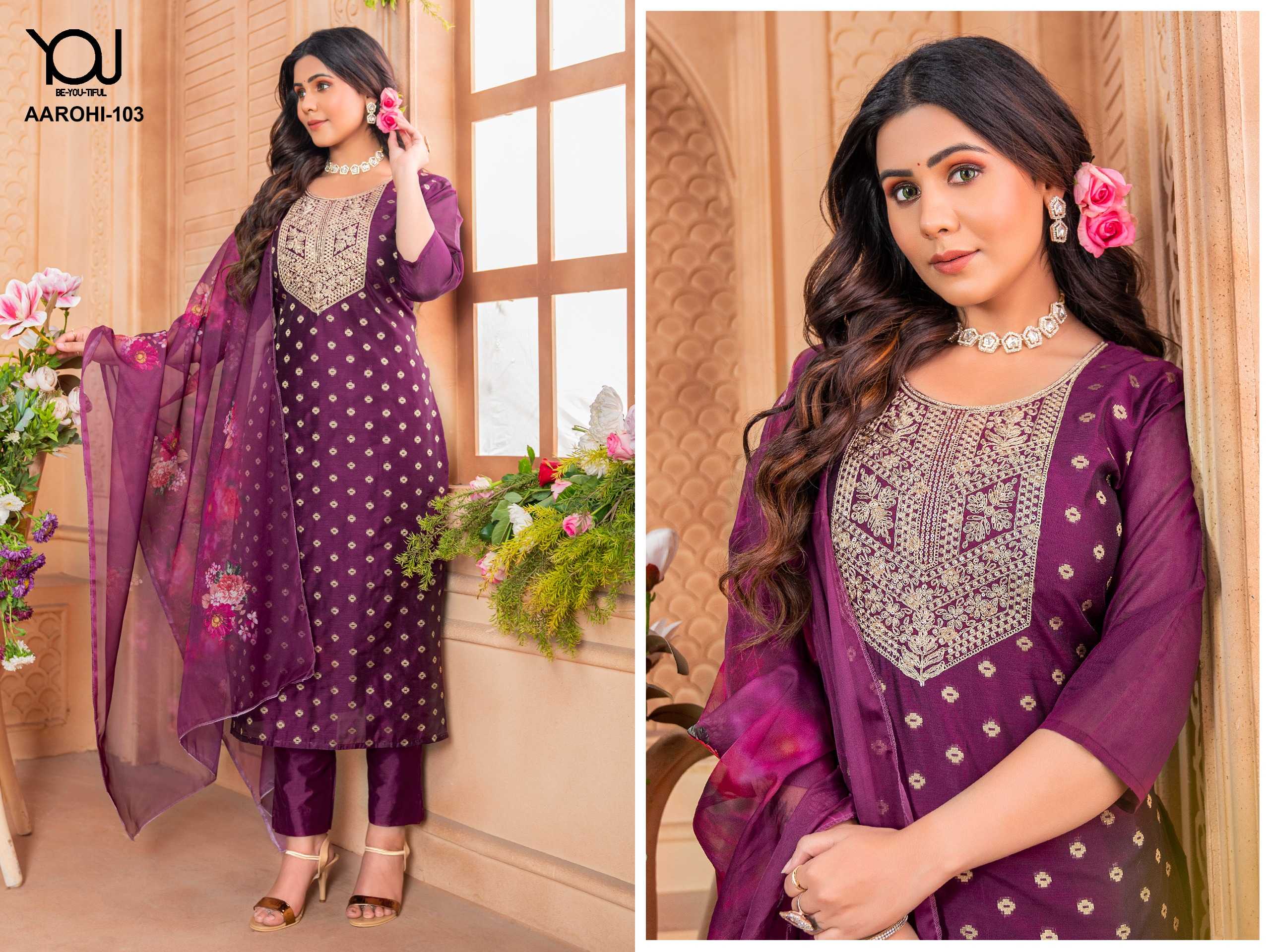 wanna you aarohi 101-106 fullstitch chanderi silk kurti pant with organza print dupatta combo set