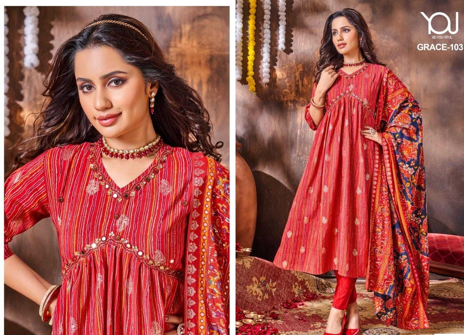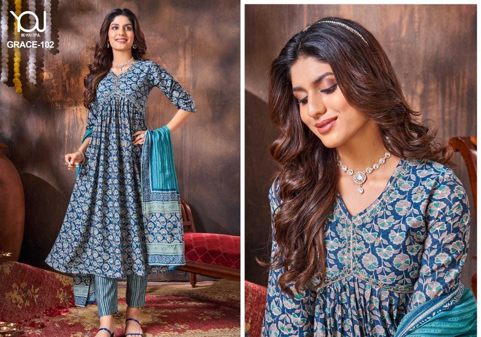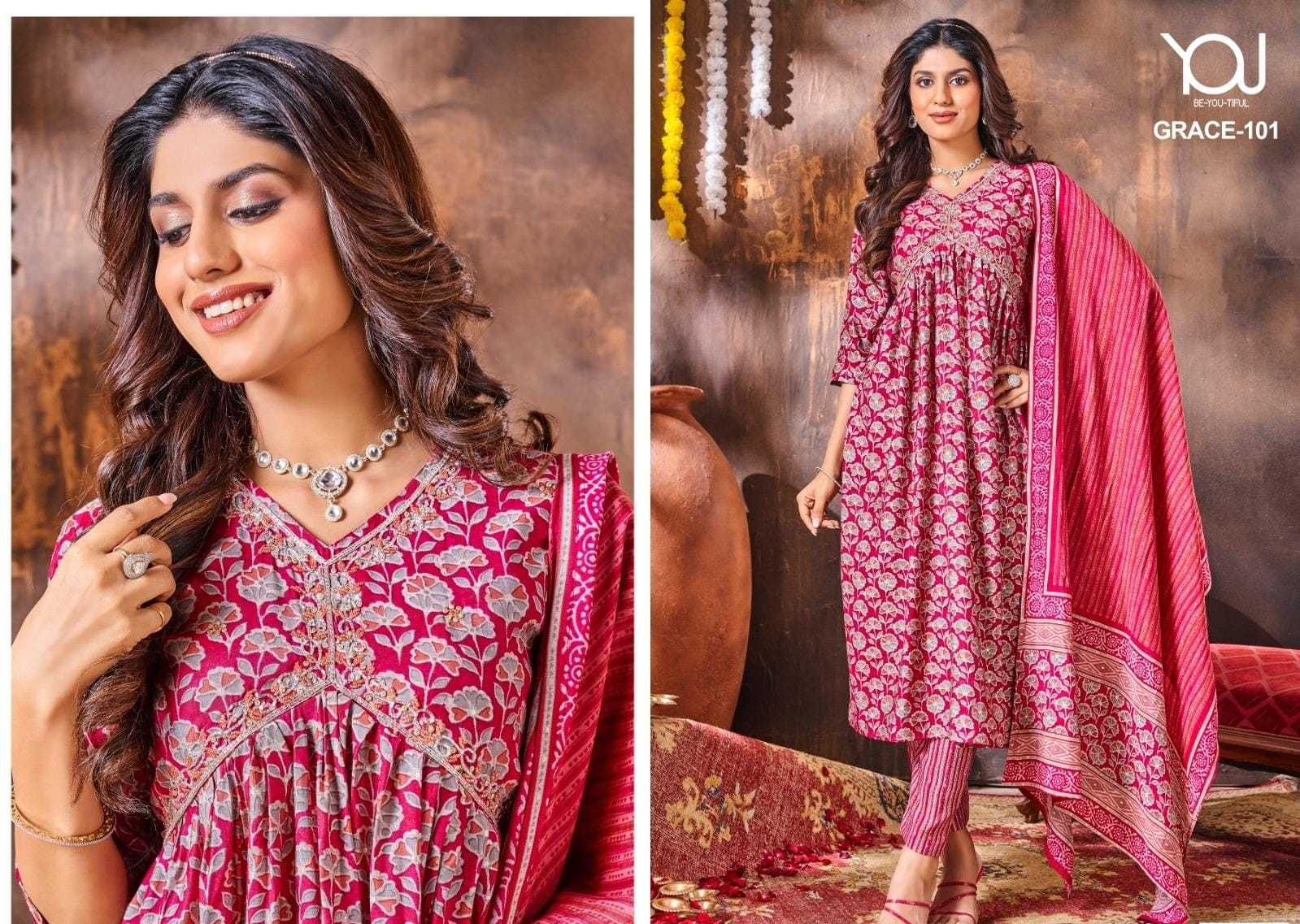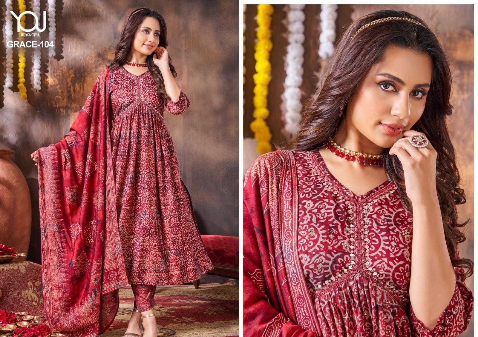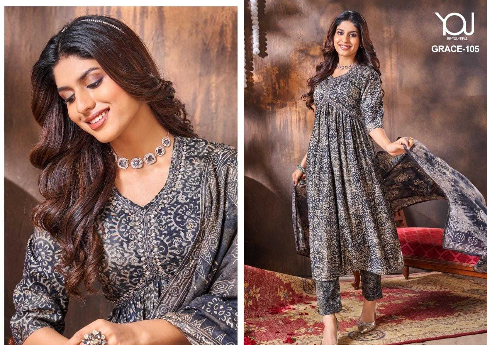 GRACE ALIYA CUT M TO XXL PURE Heavy Quality of MODAL Fabric Modal Alia Cut with Hand Work Pure quality of Digital Dupatta & Bottom printed collection 3 pcs collection Rate 930/- |