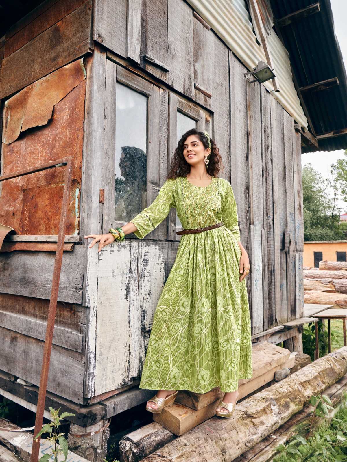 Wanna® Product 🎀 Launch New Super Fancy Pure Mull Cotton Print Sober Work Kurti Gown With Fancy Leather Belt Catalogue🎀 📕Catalogue name :" Muskaan👌🏻" 💵Rate : *660/- per pcs *