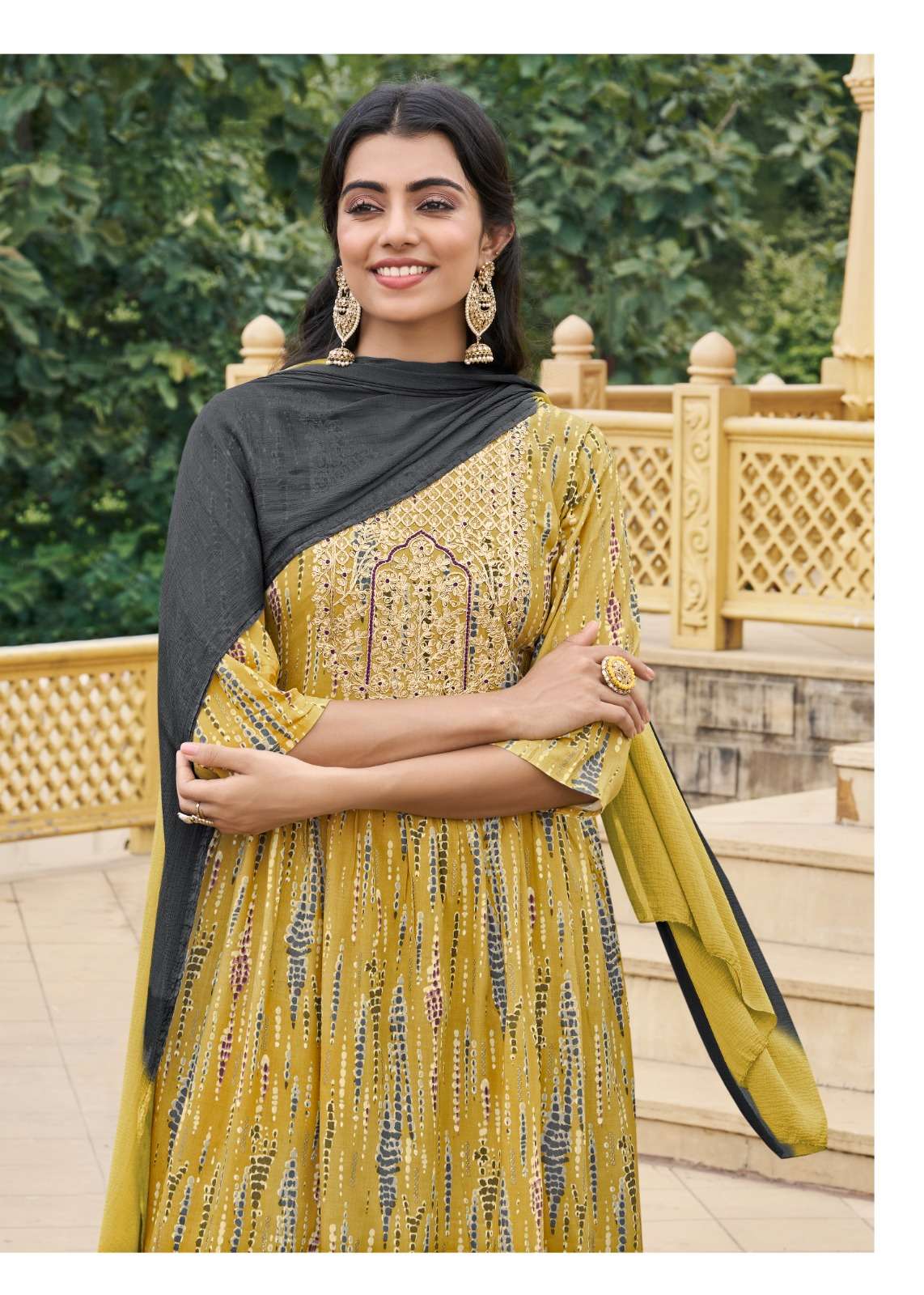 👗Top : Pure Heavy Quality Rayon Foil Printed Fabric designer Pieces With Fancy Sober Embroidery