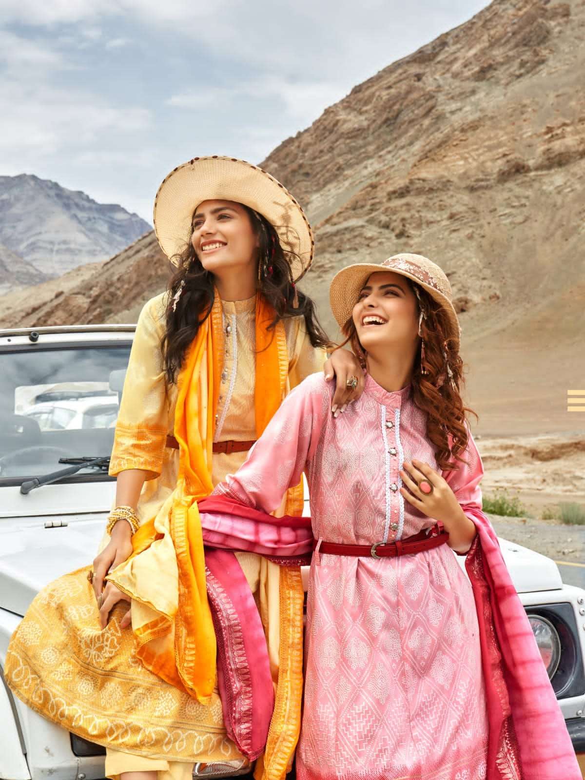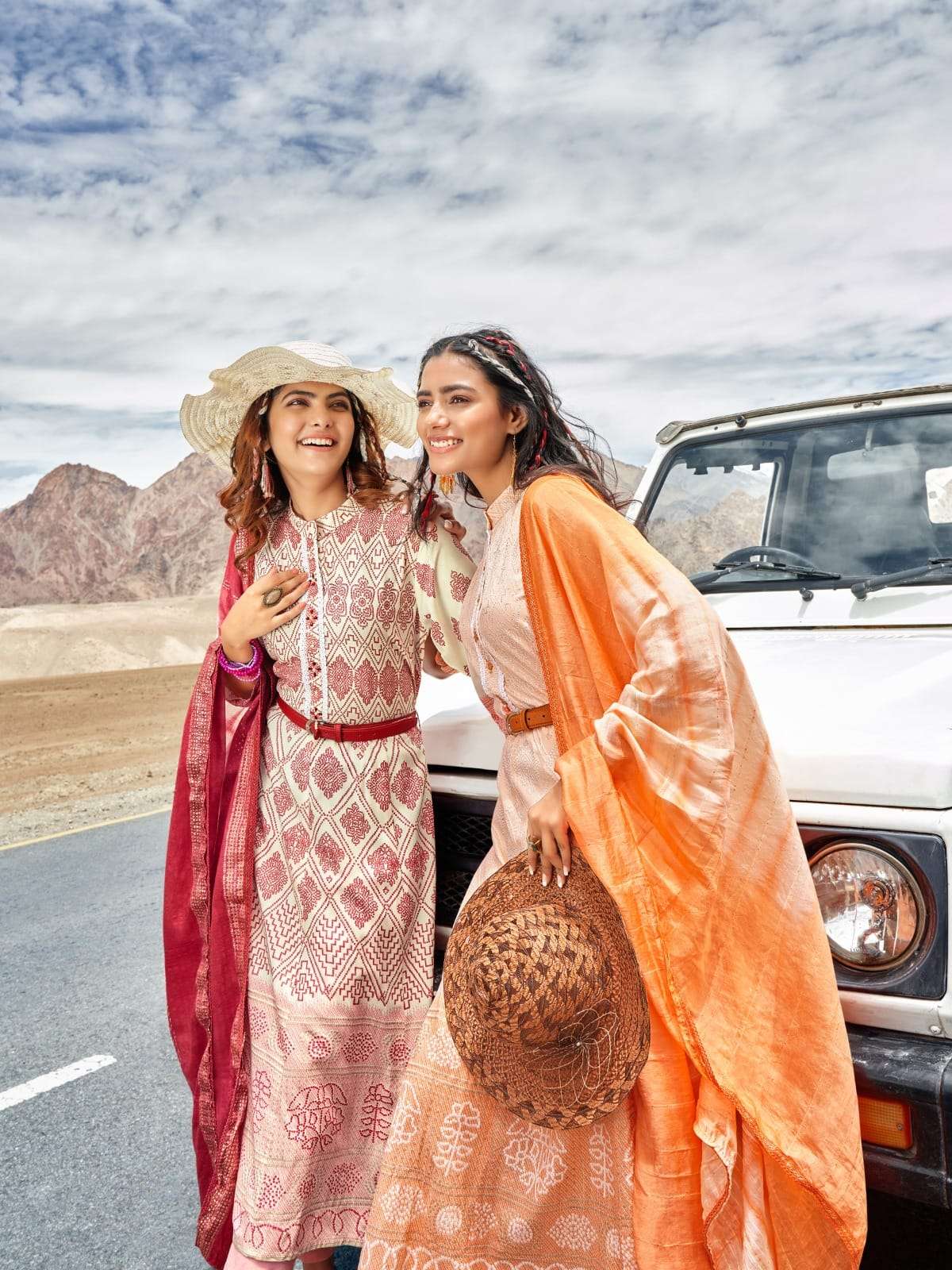 wanna you present kesari festive wear readymade fancy kurti pant and dupatta with belt catalog
