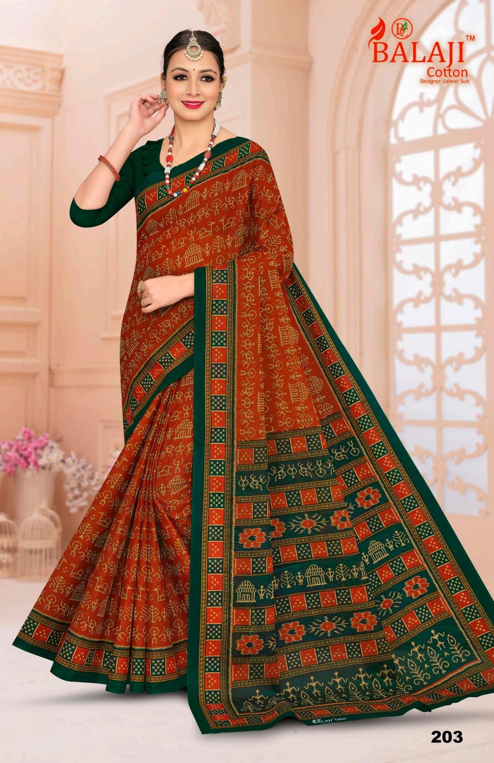 BALAJI COTTON WARLI MASLEEN VOL 2 COTTON PRINTED SAREE NEW DESIGNS RATE 315 PC :- 10 |