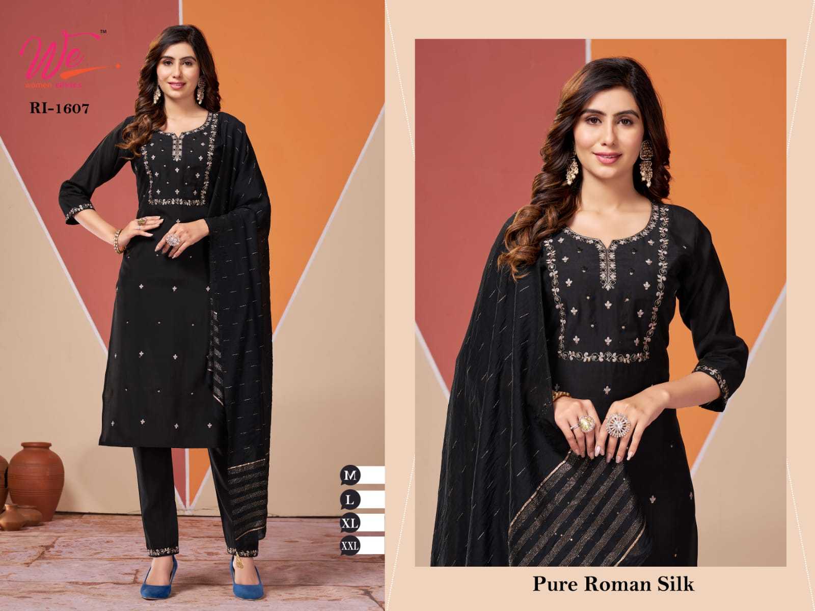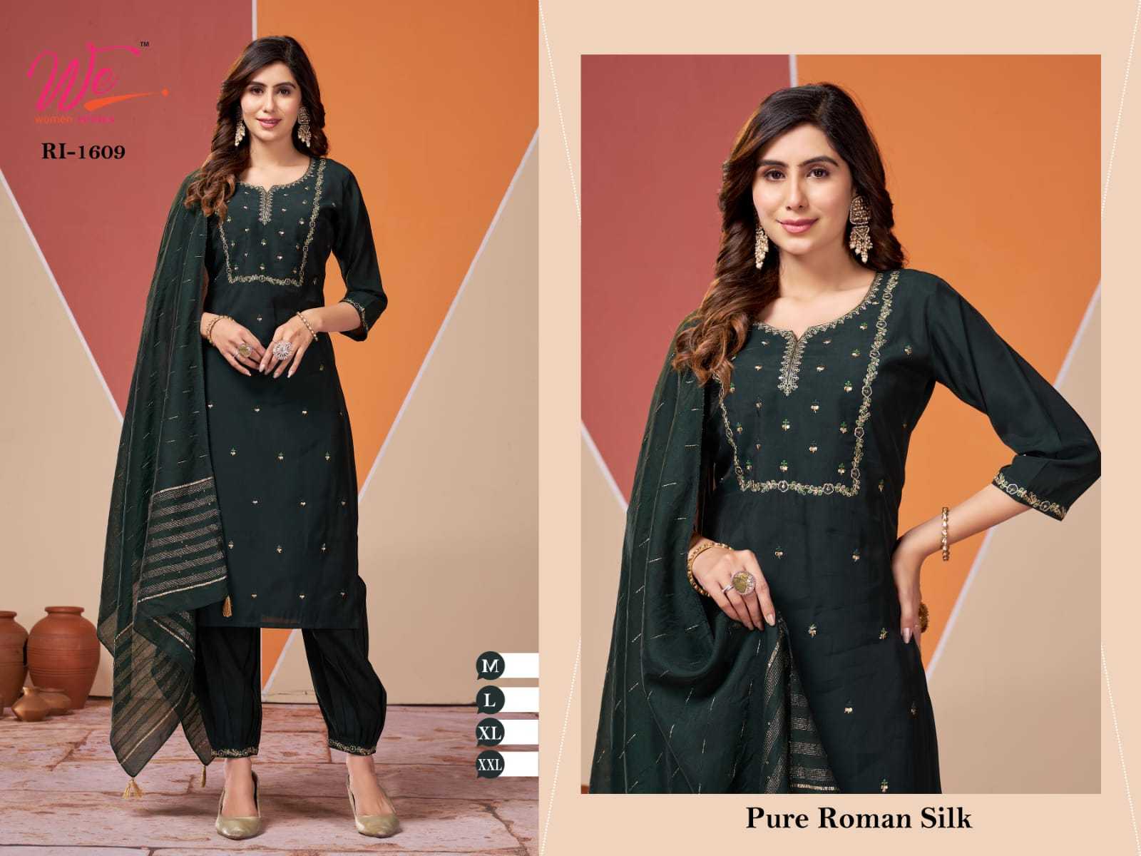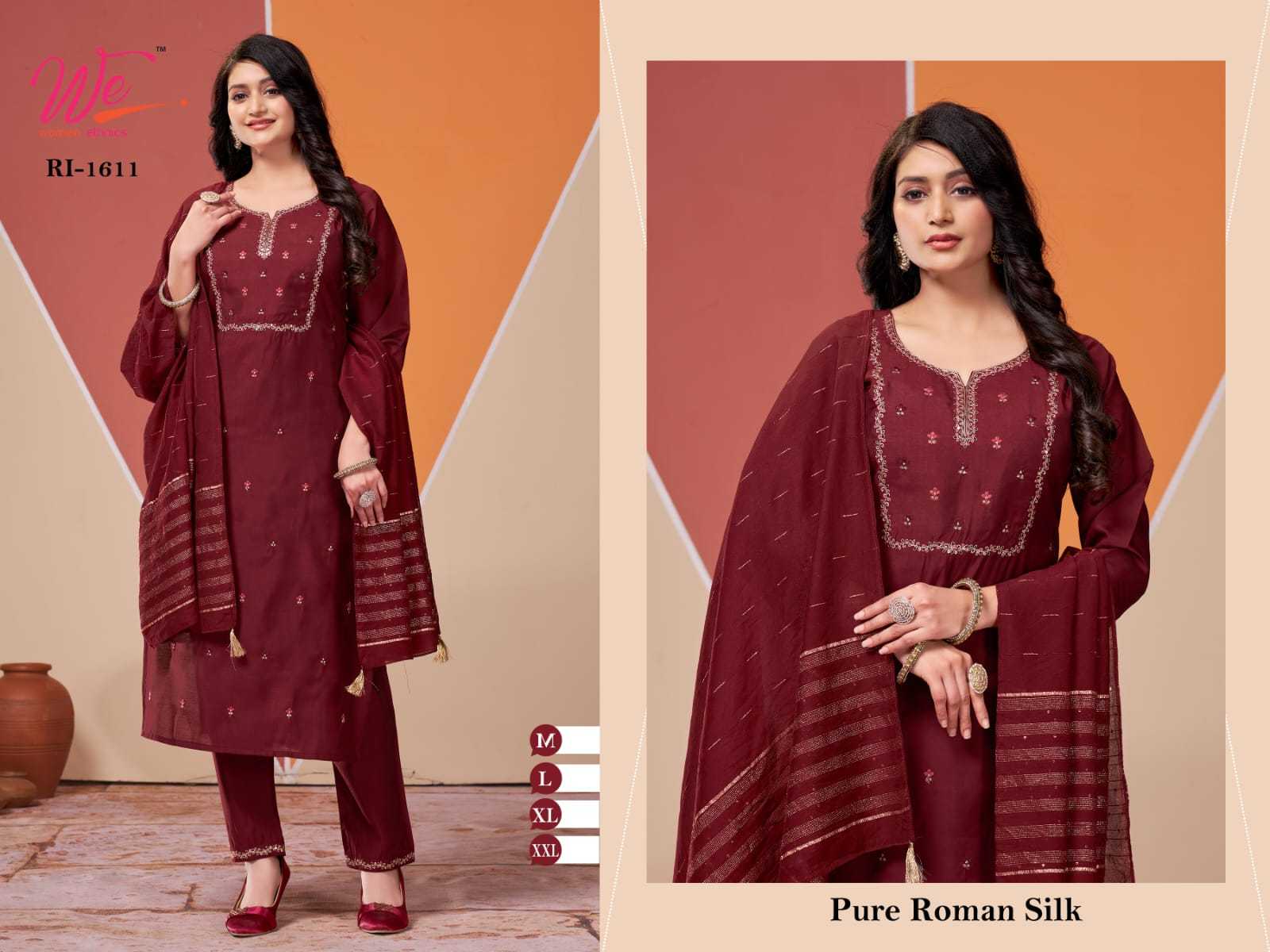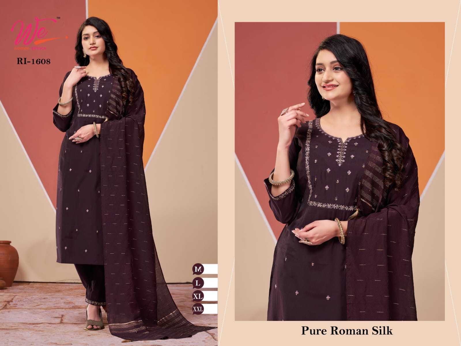 we women ethnic 1607 1608 1609 1611 roman silk fancy combo set full stitch 3pcs dress