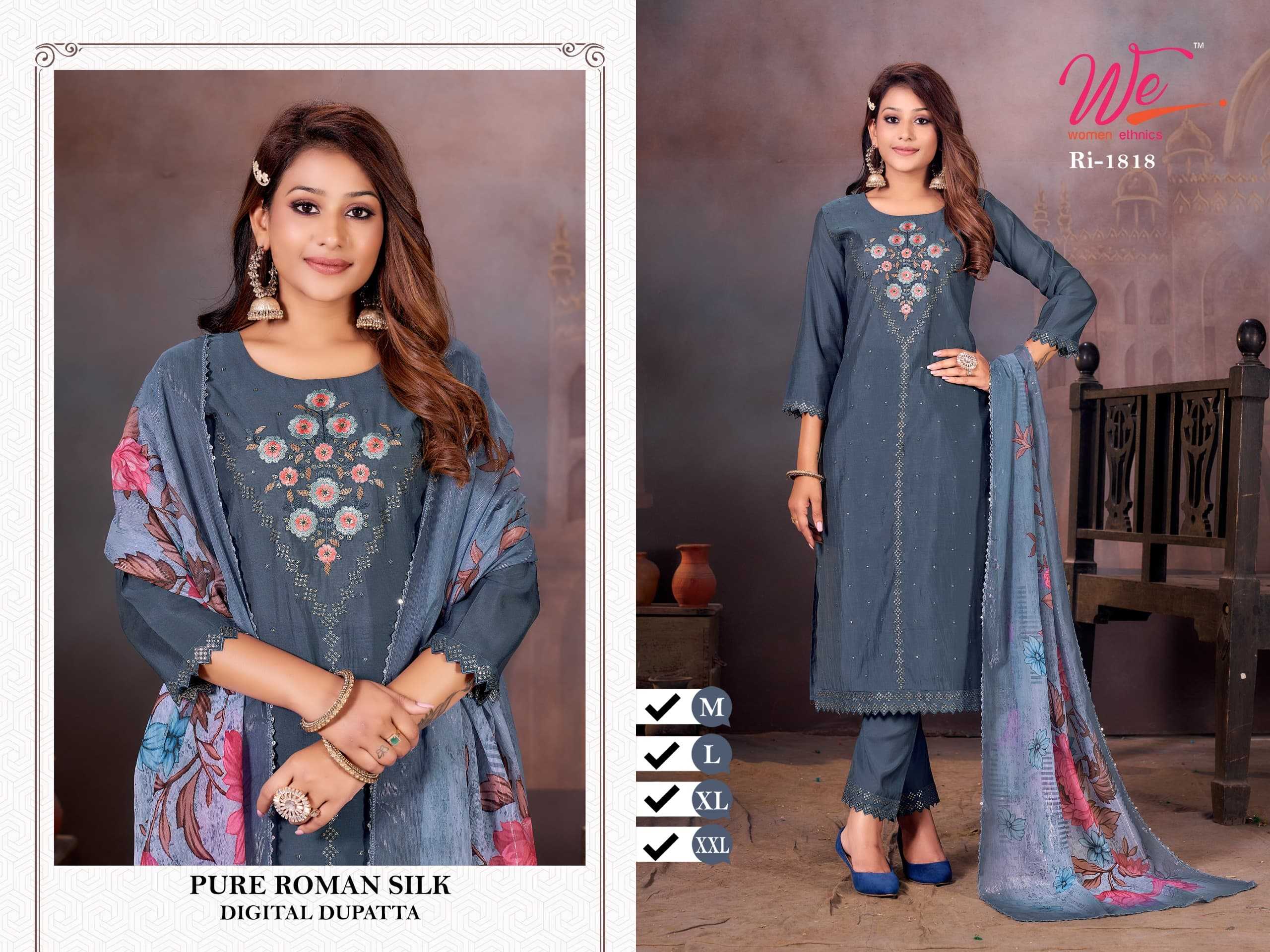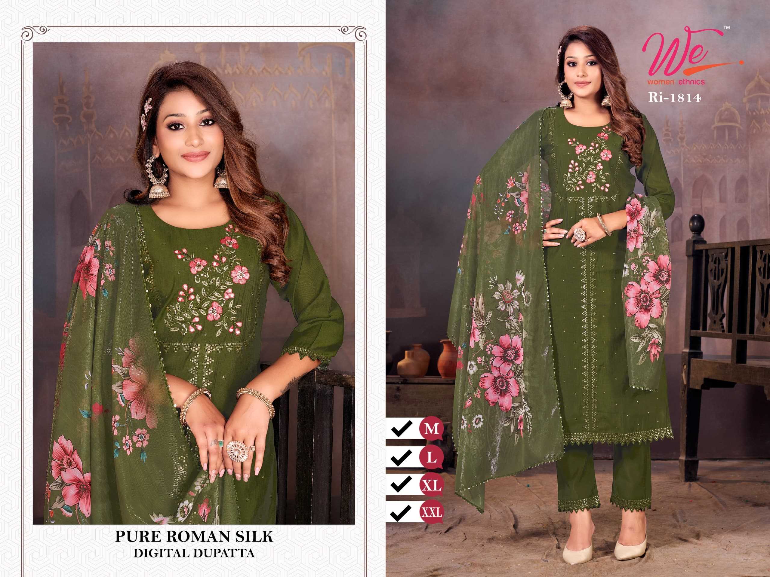 we women ethnic 1814 & 1818 fully stitch roman silk combo set festive 3pcs dress