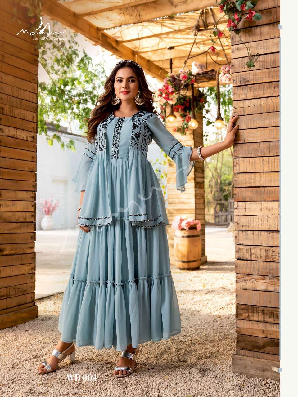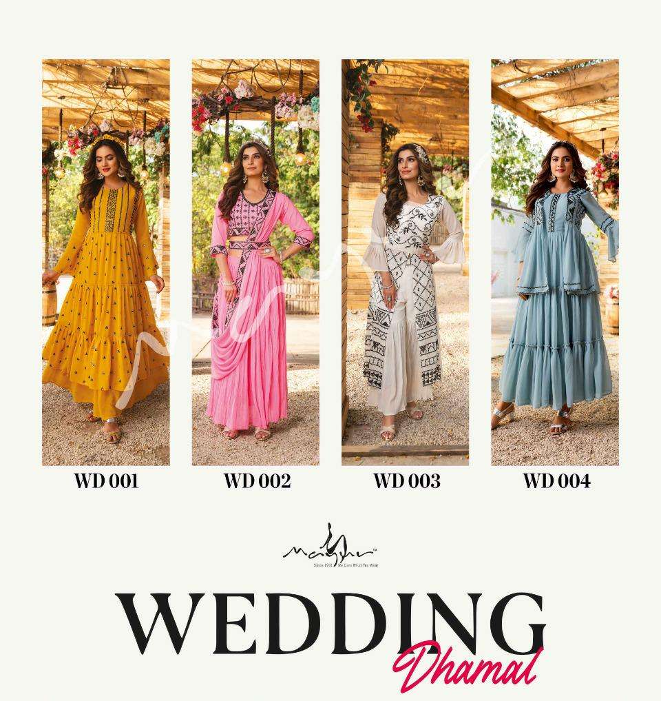 ¨ Wedding Dhamal Everything about the Indian Wedding is fascinating... Different Rituals, unique looks, varied timings - no wonder, getting the right wedding wear that is stylish yet comfortable can throw into a tizzy! Not anymore, though... ✨ This Wedding Season bring yourself into the spotlight by wearing Magnificent Dresses by Mayur ✨ 💛ðŸ’� New Launch ðŸ¤ï¿½ðŸ’œ â�¤â€ï¿½ðŸ”¥ Alert â�¤â€ï¿½ðŸ”¥ 💃ðŸï¿½» No of Dhamal Garments : 4 Fabric Details : Dress 👗 - Premium Georgette (with inner) - 56" Rate 1545/- Mayur Styling - Indo Western Garments |