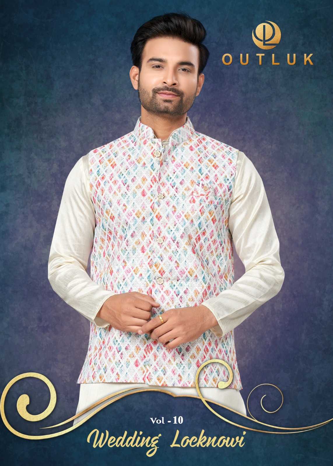 wedding locknowi vol 10 by outluk readymade mens kurta pajama with modi jacket collection