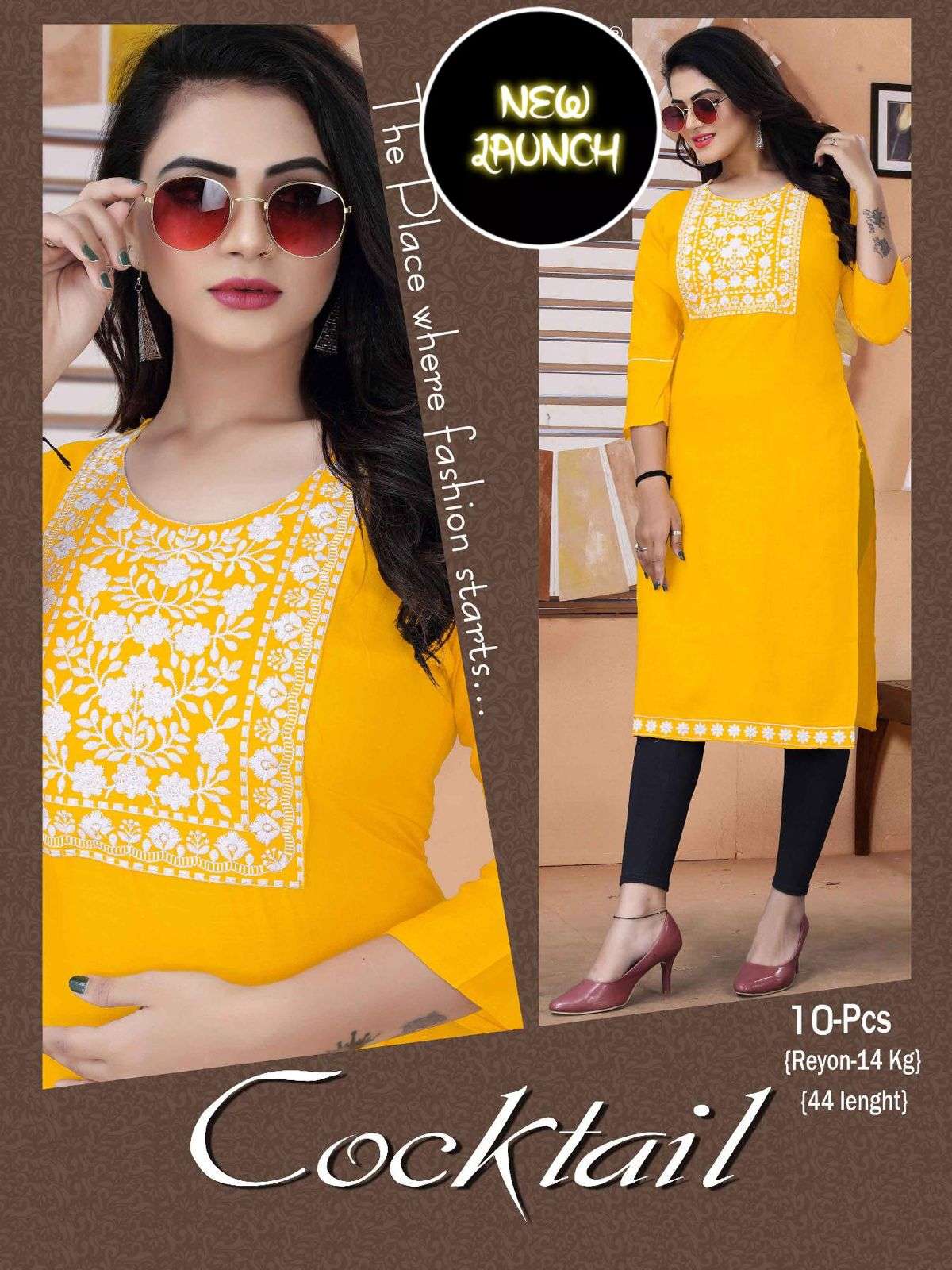 White Cocktail Rayon 14 Kg White Embroidered Work with Patti KURTI CATLOG WHOLESALER BEST RATE