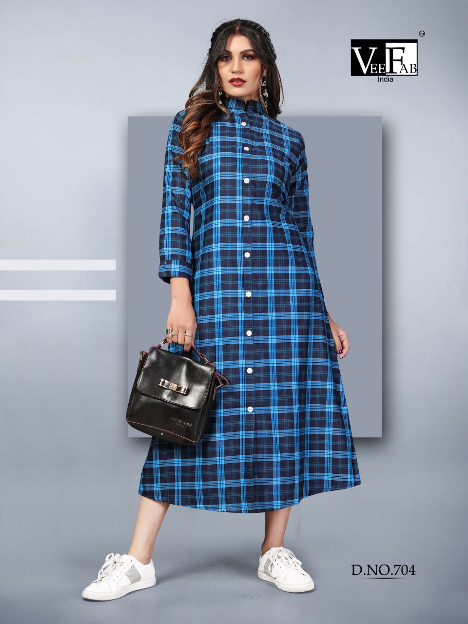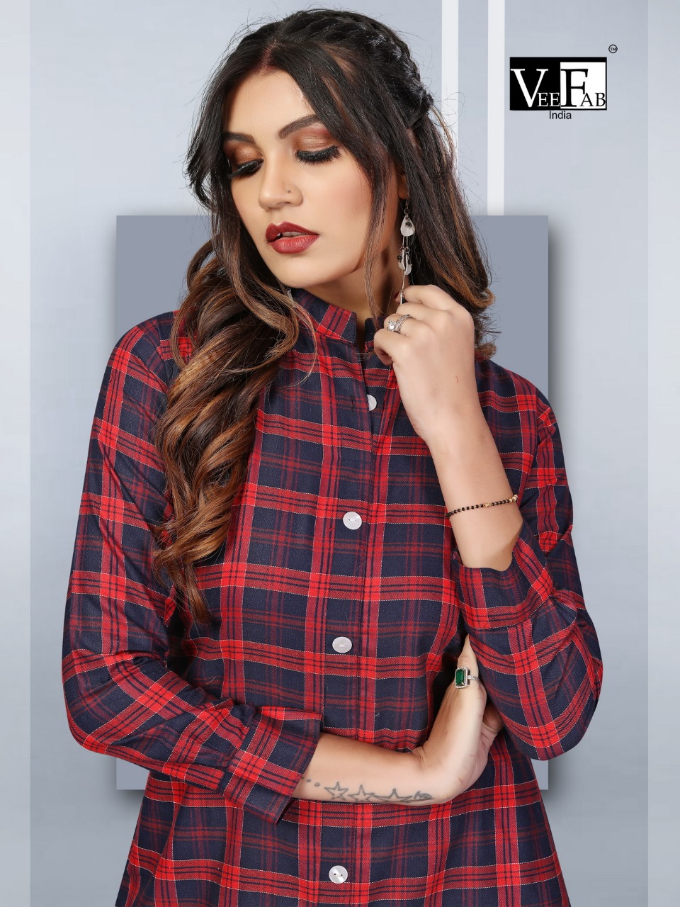 Winter Grace Vol 7 By Vee Fab Cotton Casual Wear Checks Pattern Kurti At Wholesale Price