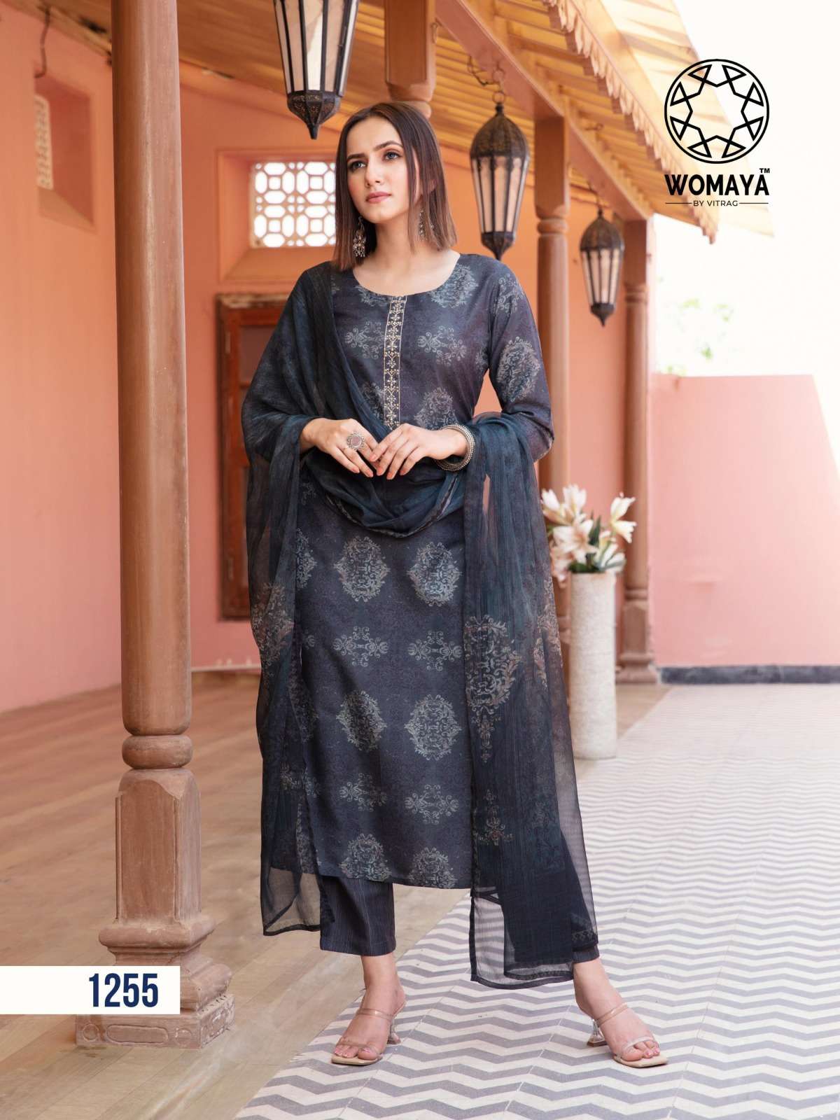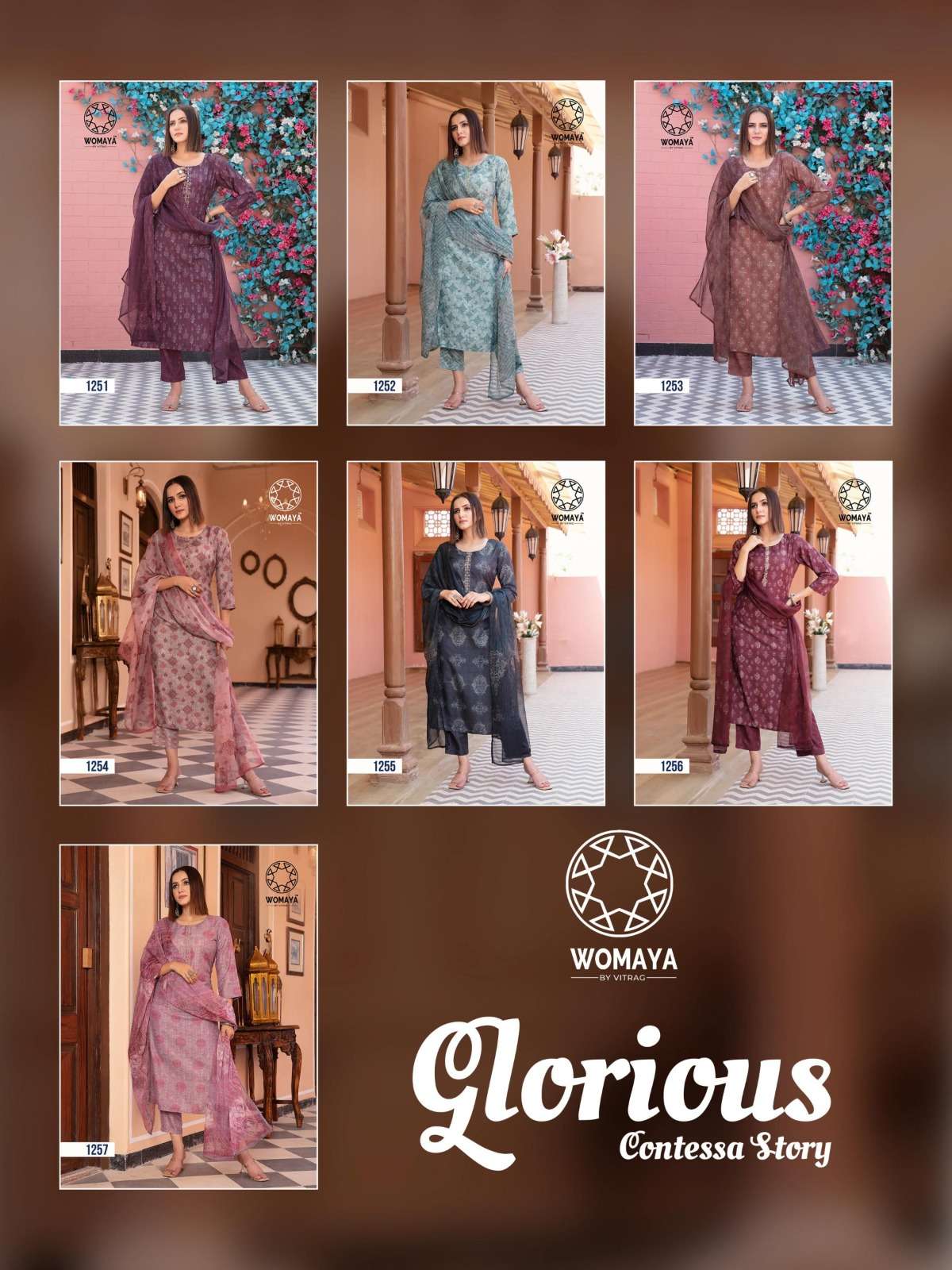 womaya glorious contessa story fancy muslin digital print readymade salwar kameez combo set
