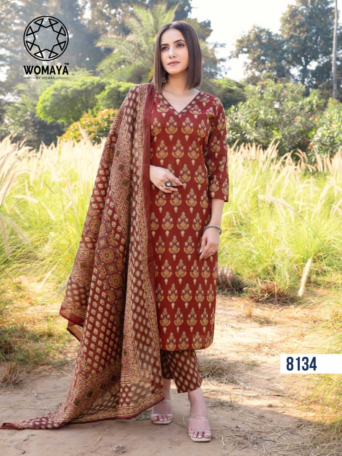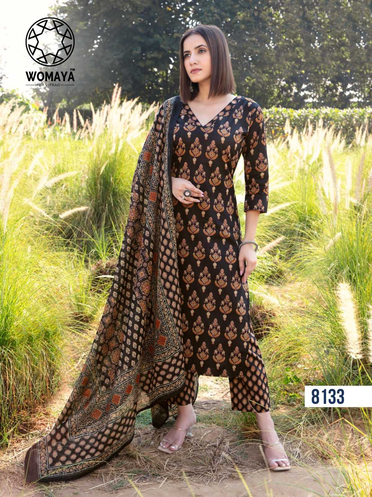 womaya kurtis classy ajrakh story vol 3 readymade 3 pcs cotton combo set