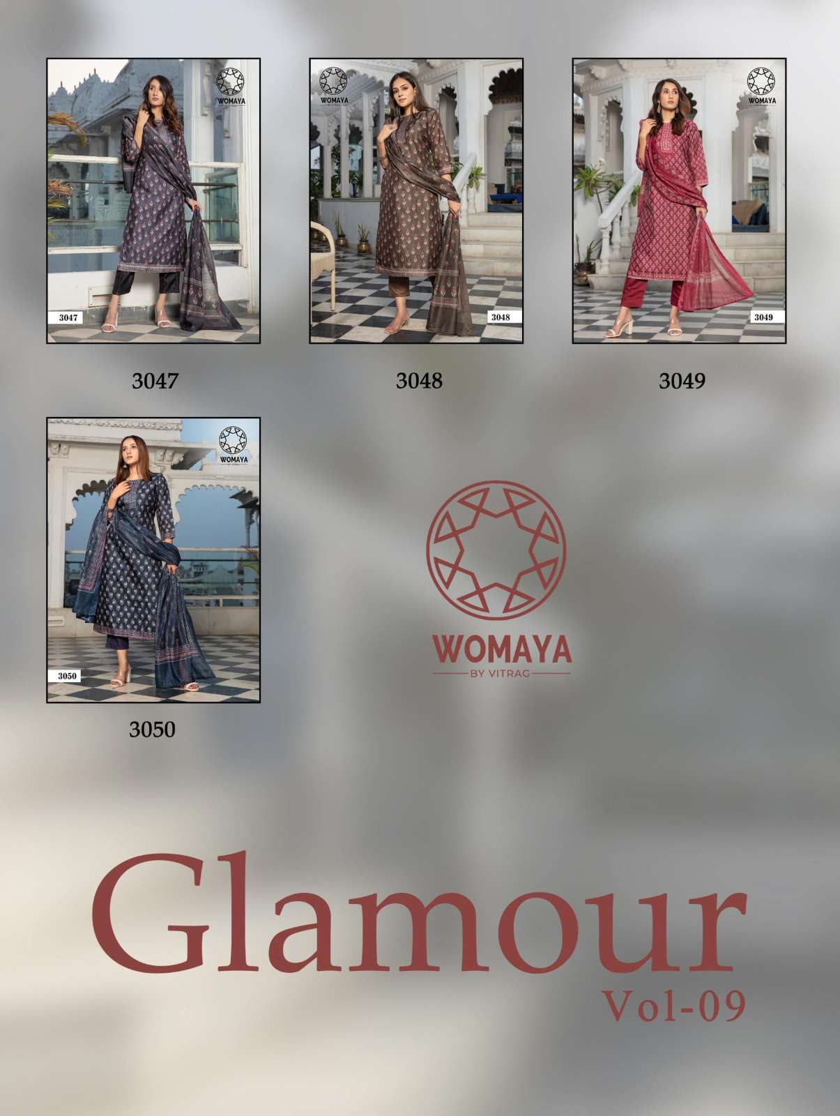 womaya kurtis present glamour silk story fancy digital print readymade salwar kameez combo set