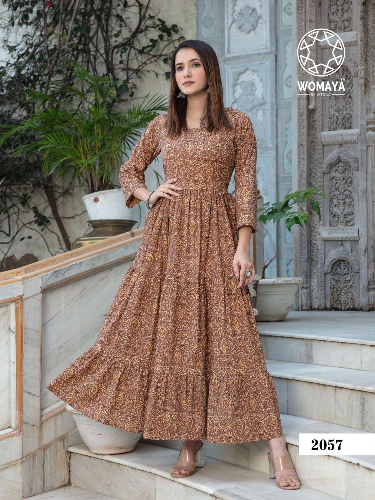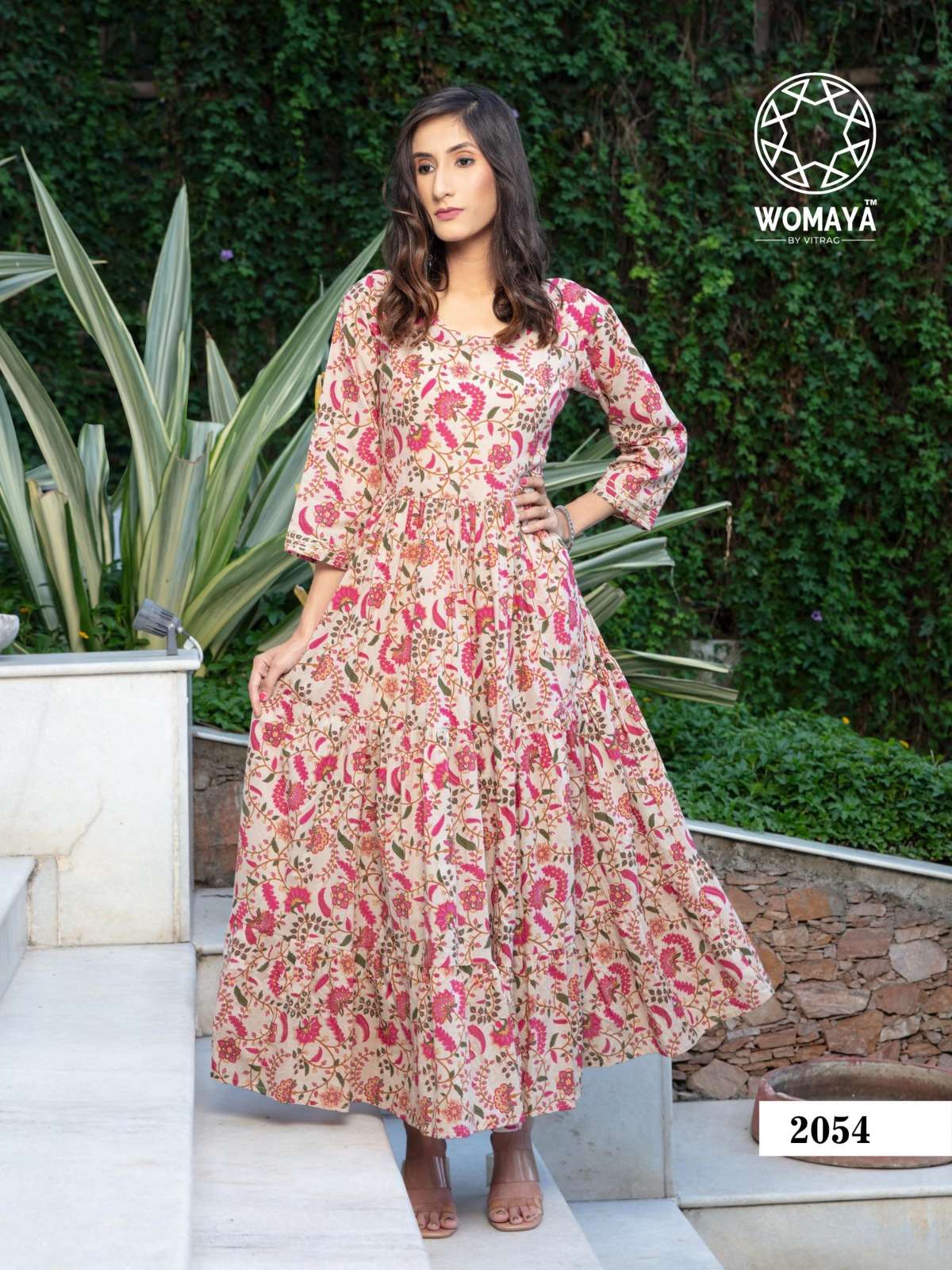 womaya kurtis presnt vibrance floral story fancy flared style long gown combo set