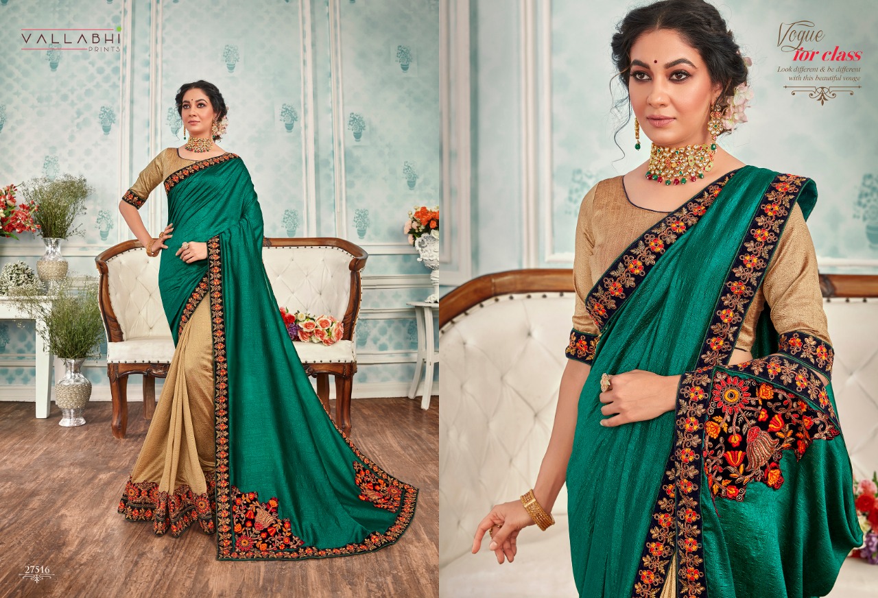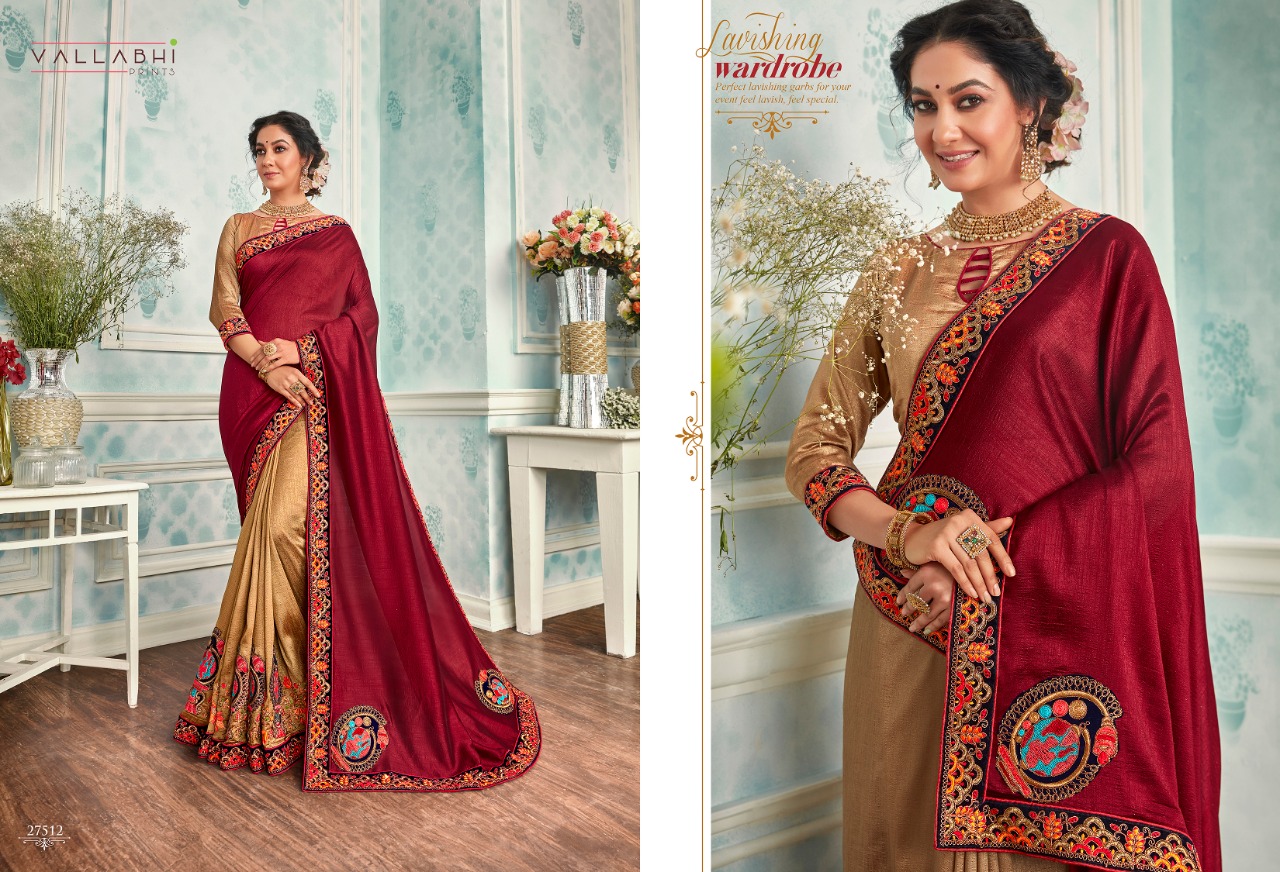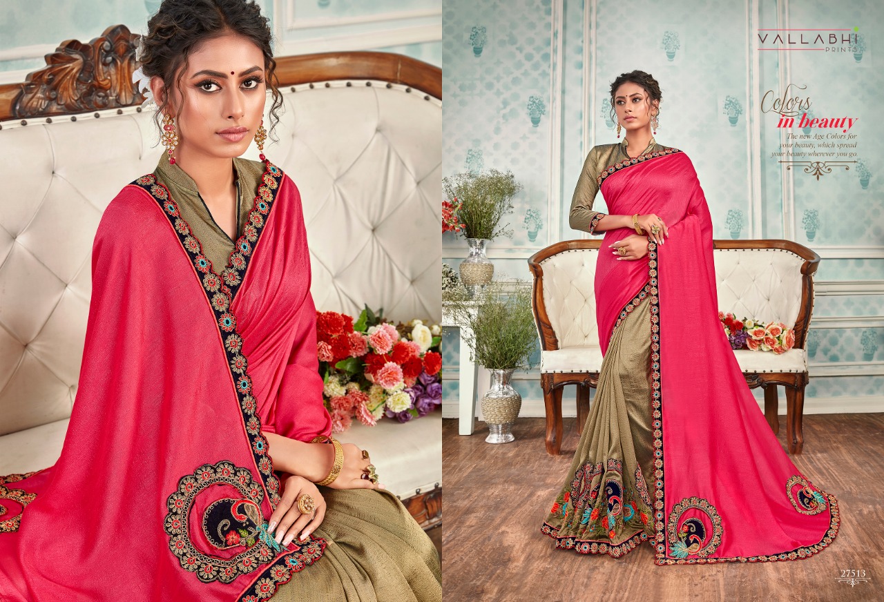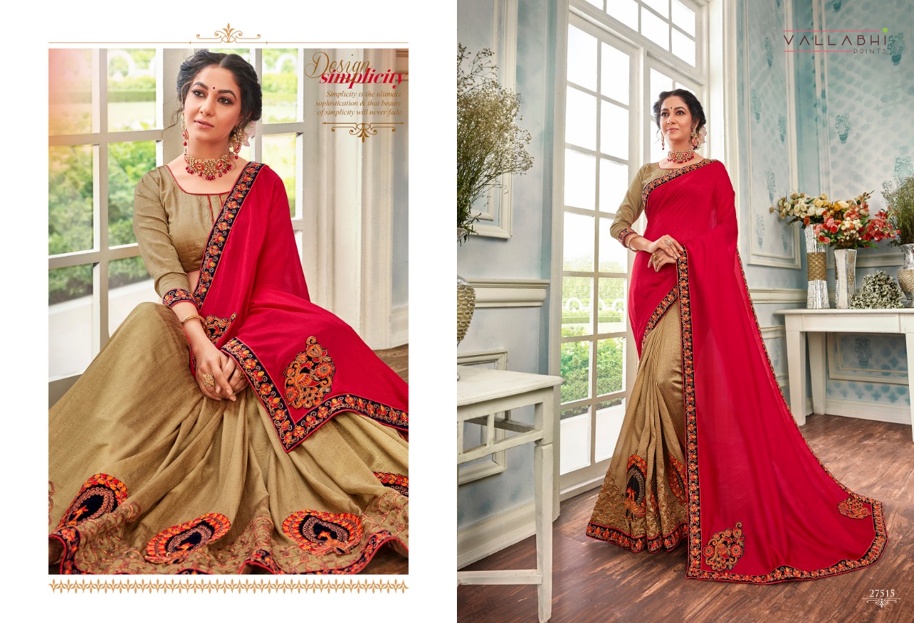 Wonderful By Vallabhi Print Vichitra Designer Wedding And Party Wear Half Half Pattern Saree