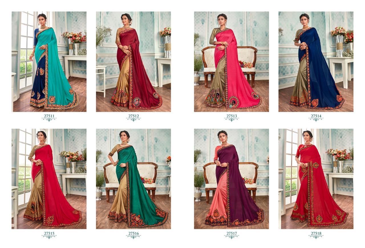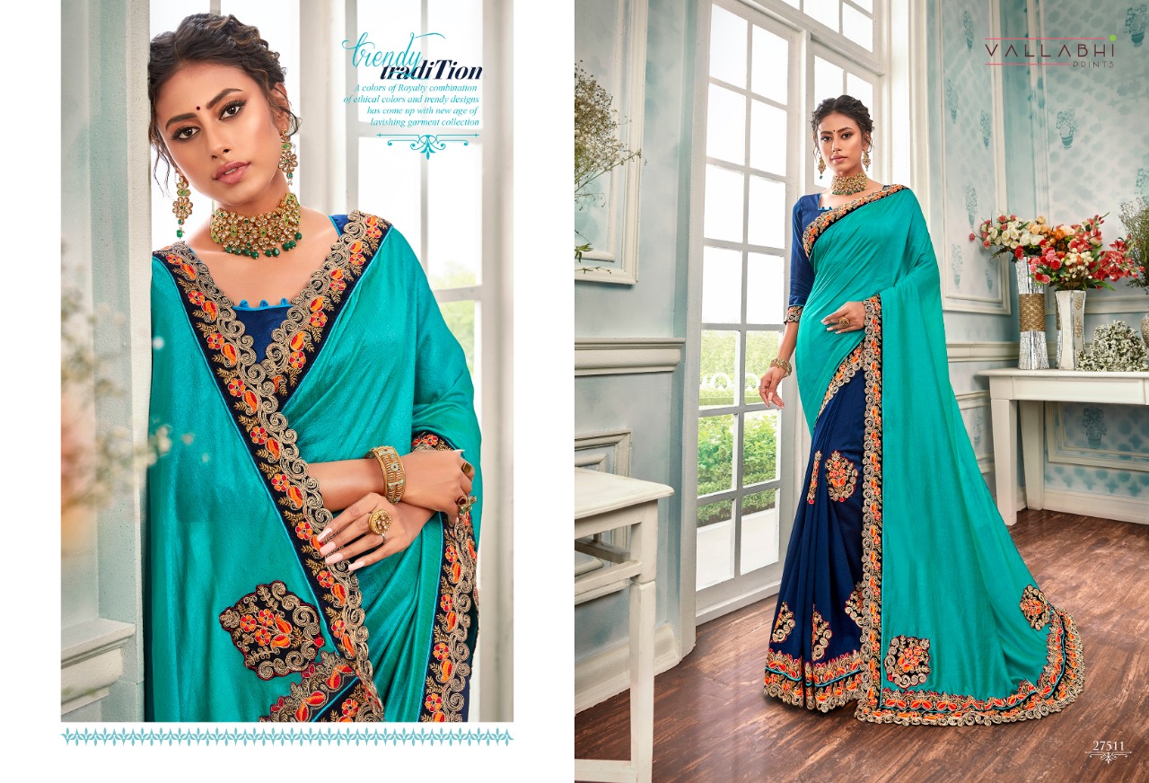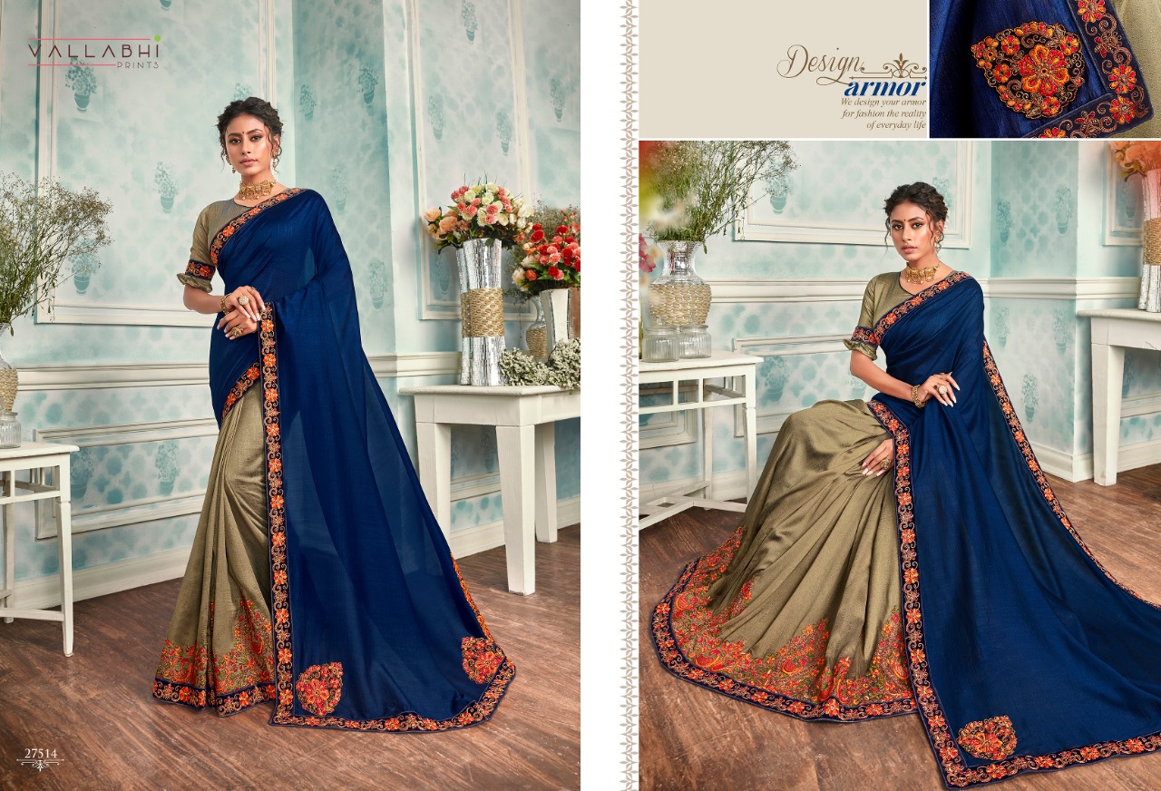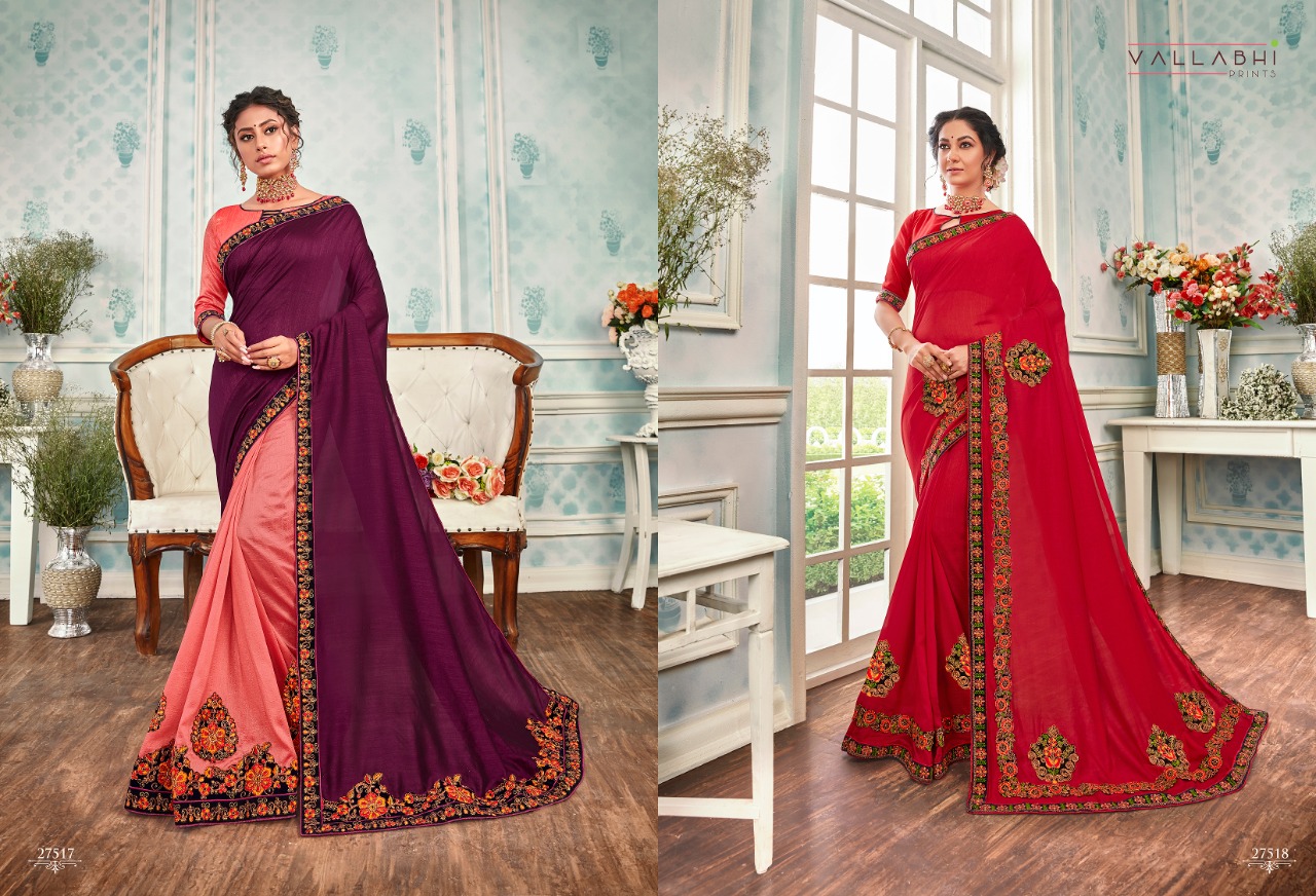 Wonderful By Vallabhi Print Vichitra Designer Wedding And Party Wear Half Half Pattern Saree