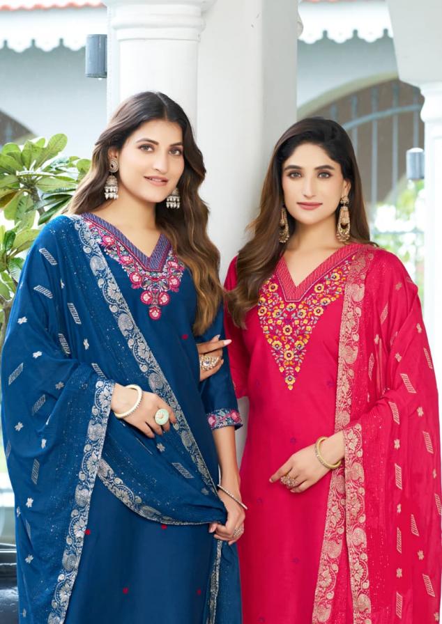 MAHIMA 💃 STRAIGHT CUT 3 PCS CONCEPT Brand : WOODEE 🥋 : Top+bottom Premium quality viscose Gadhawal 🧵: Stylish thread work with handwork 💼 : S(36),M(38),L(40), XL(42), XXL(44),3XL(46) 👗: Length top : 45" price:- 775/- 📝 BOOK YOUR ORDER NOW |