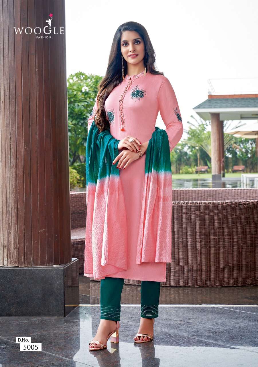 Brand Name : WOOGLEE Catalog : DESTINNY No of Design : 6 Fabric Details Pant : Cotton Slub Lycra Dupatta : Chanderi Sequance Size : M(38), L(40), XL(42), XXL(44), 3XL(46) Rate : 1050/ Pic + 5% GST Special instructions : Do not press or iron on Nylone Viscose Fabric