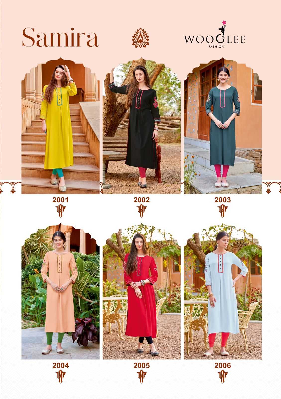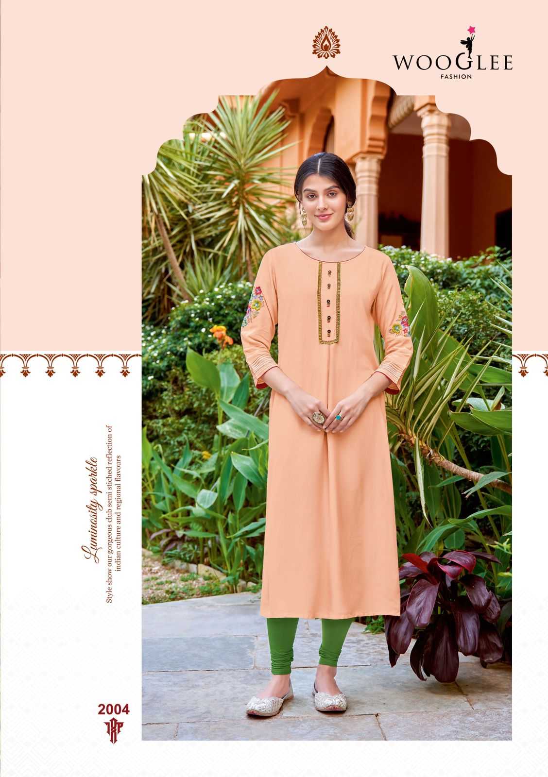 wooglee samira heavy rayon fancy casual kurtis catalog