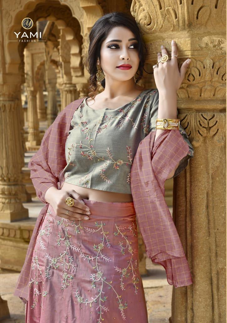 Yami Fashion Launch Kaanchie Silk Cape Top Skirt With Dupatta Online Collection