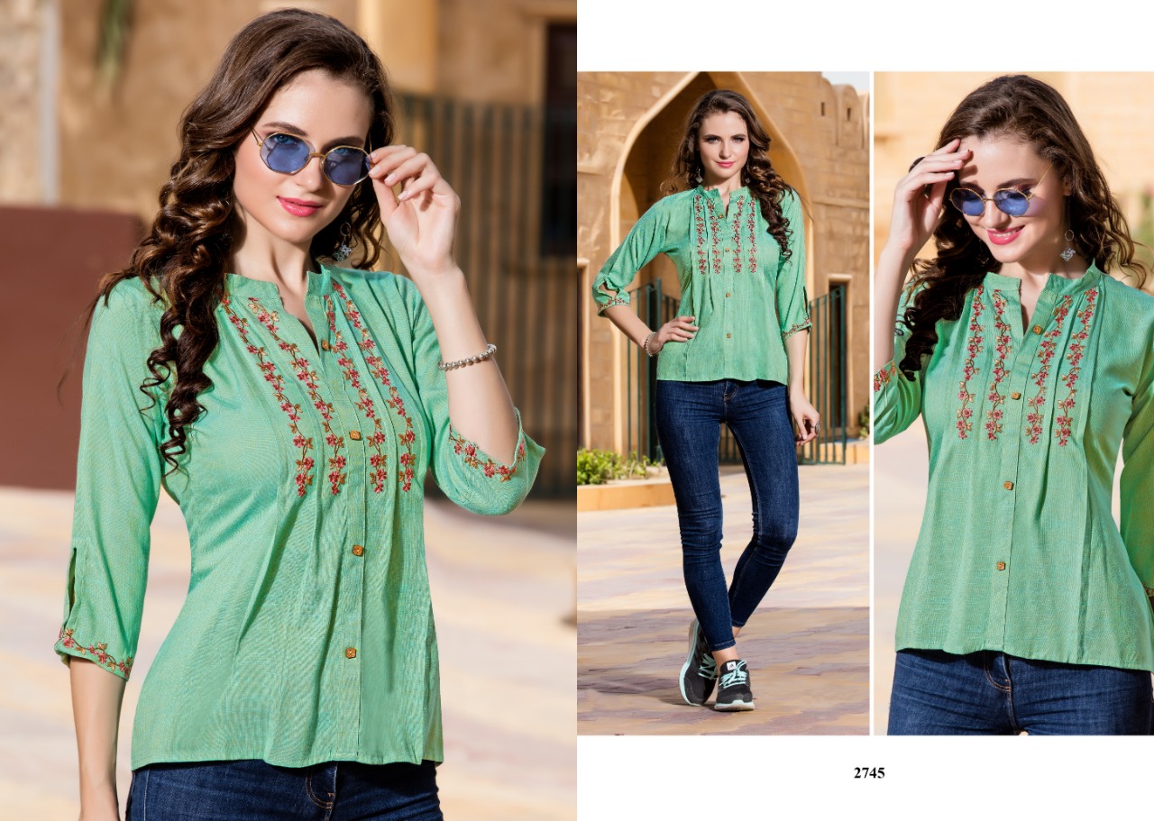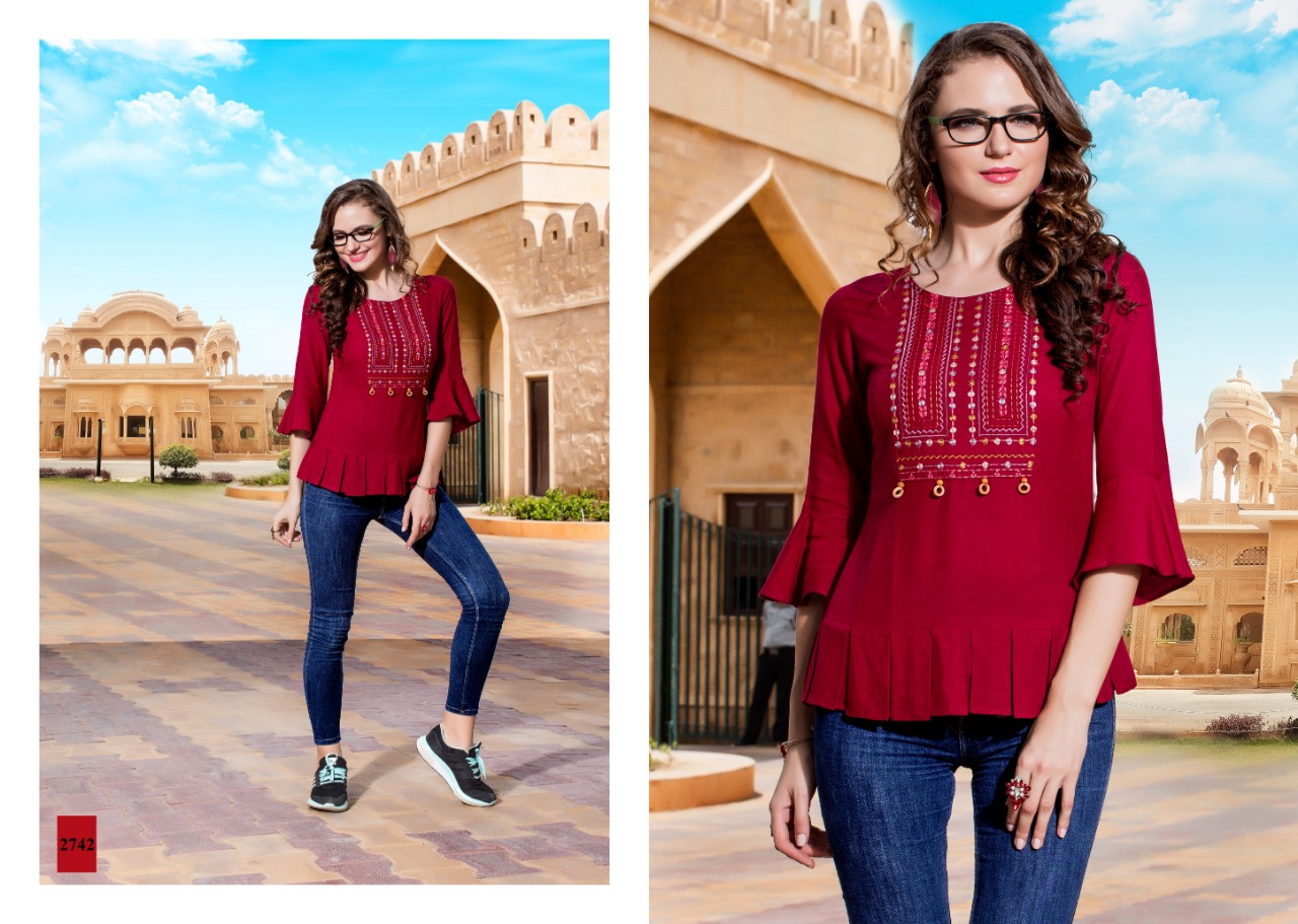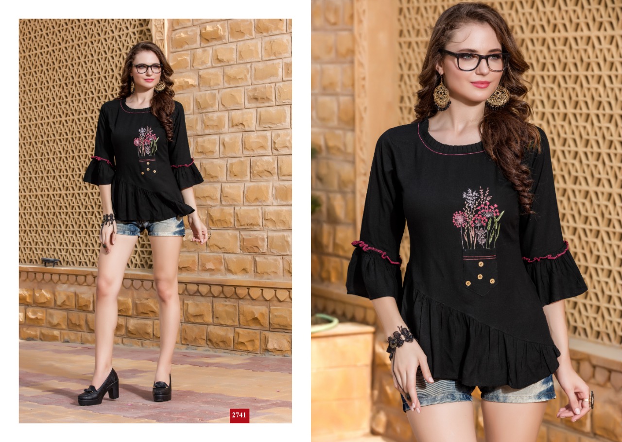 Yami Fashion Has Launched new Catalogue Short Top" Topsy Vol -7" Name- Topsy Vol-7 Pce-9 Fabrics-Rayon Base weaved + Embroidery Work Size- S36, M38,L40, XL42, Rate-395/- Despatch by 9 Sept |