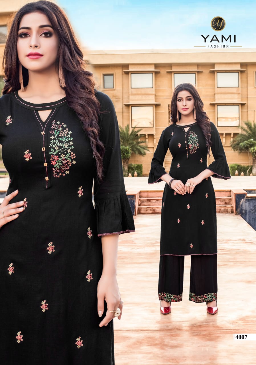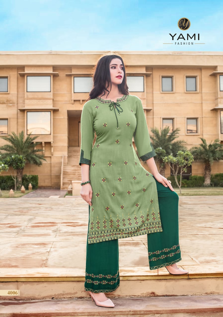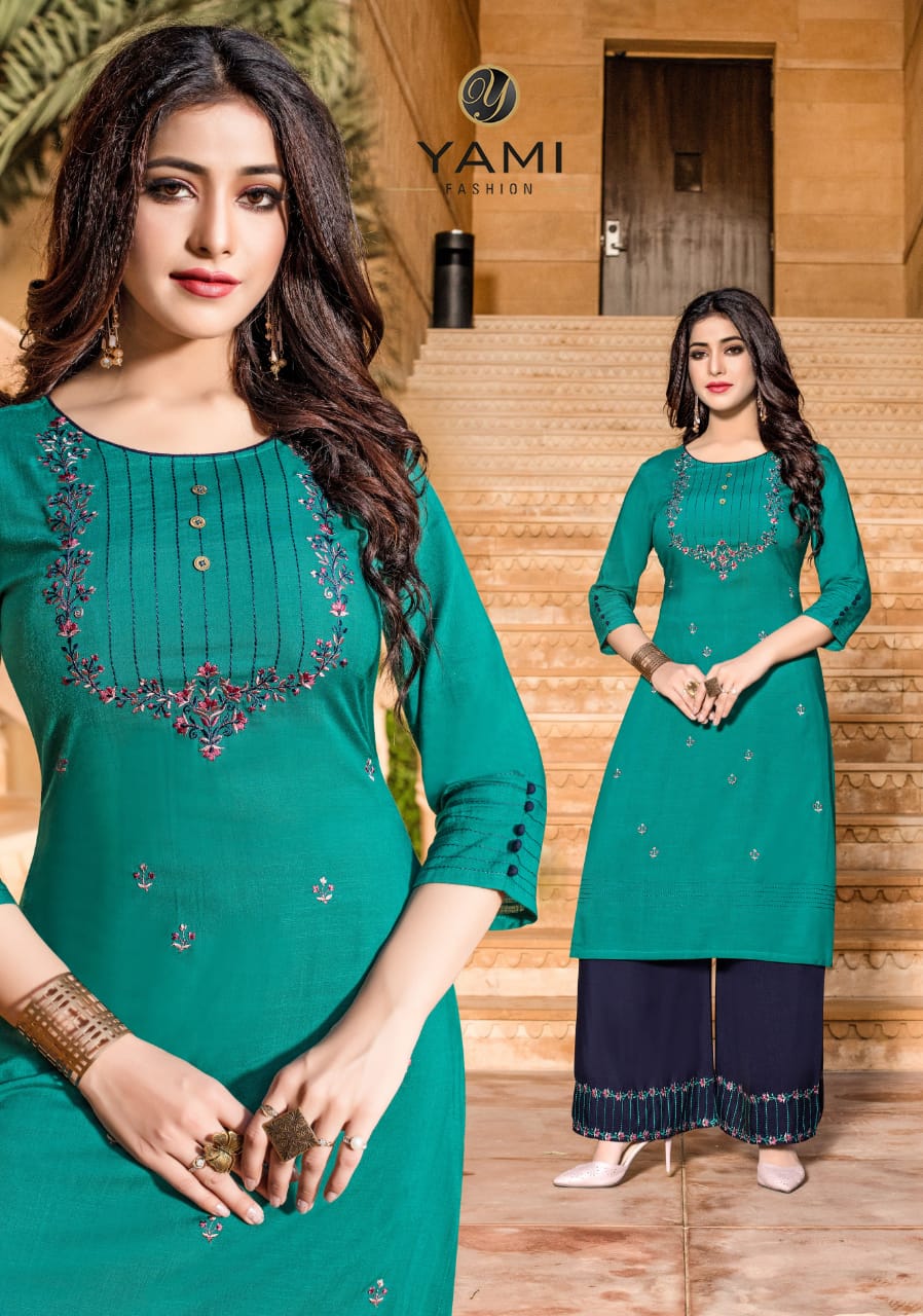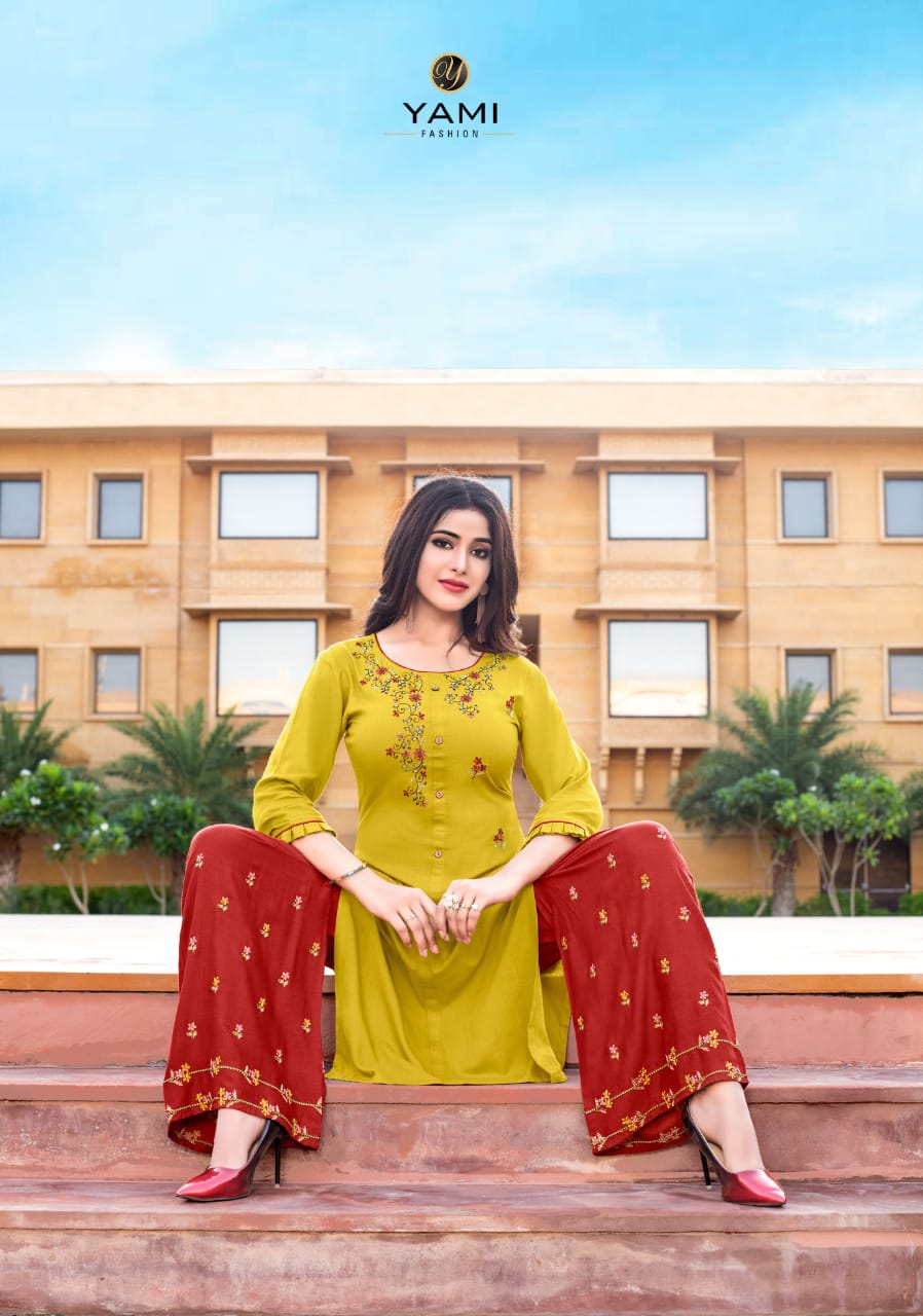 Yami Fashion Present Chemistry Rayon With Embroidery Kurti With Plazzo