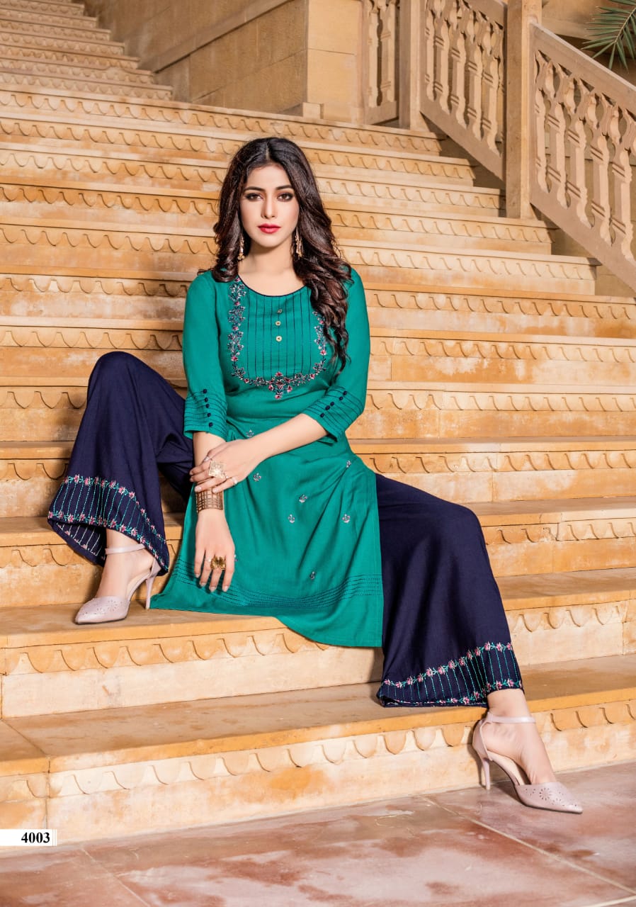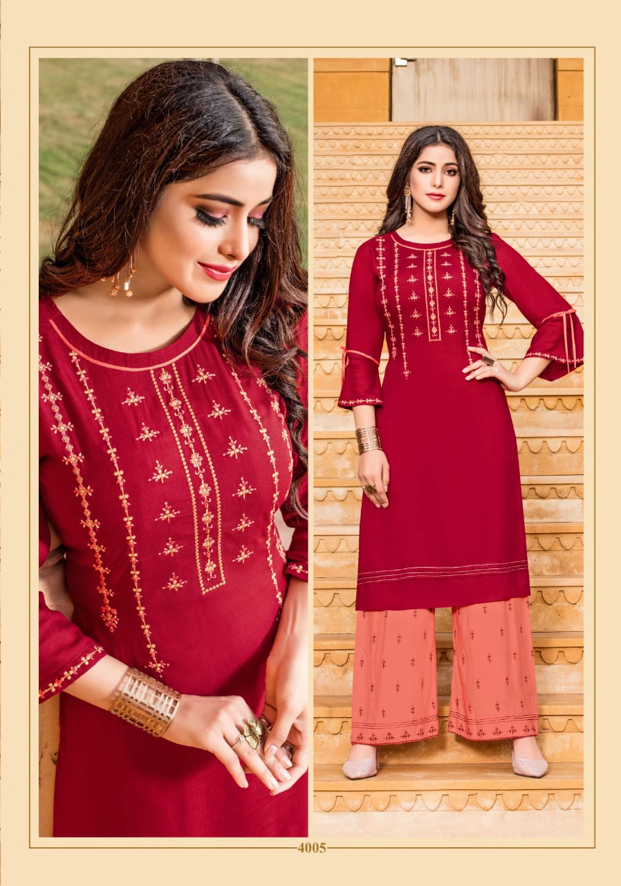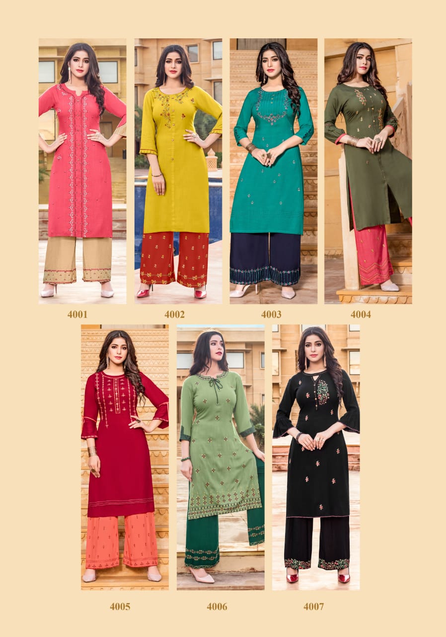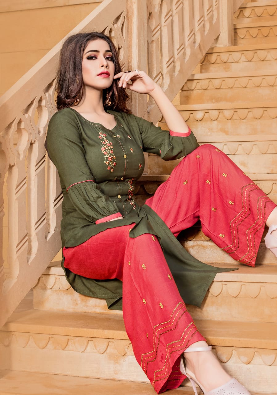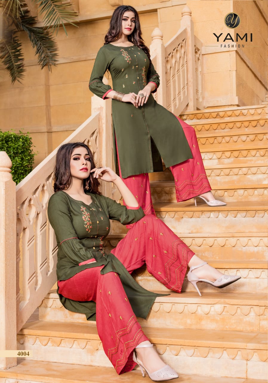 Yami Fashion Present Chemistry Rayon With Embroidery Kurti With Plazzo