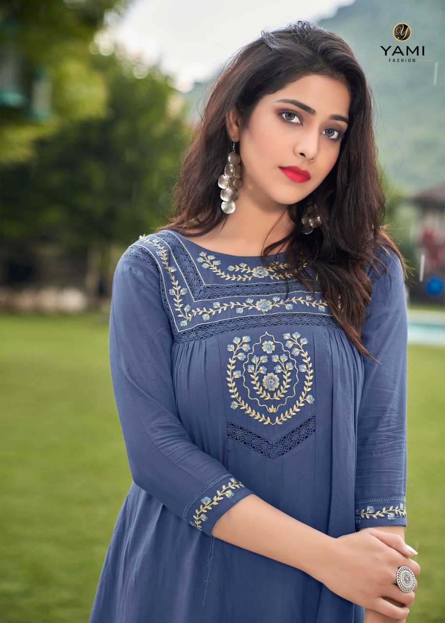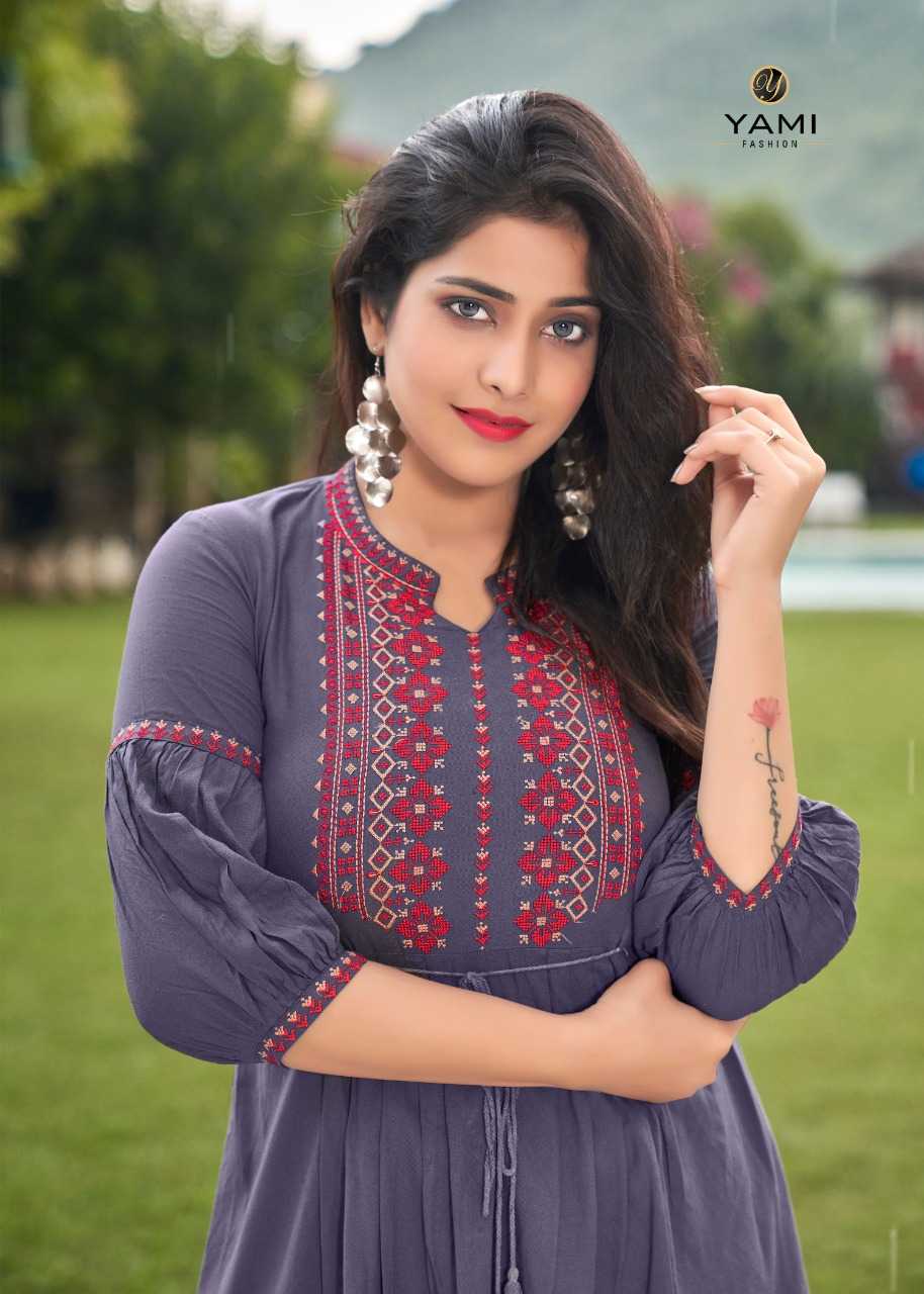 Yami Fashion Has Launched New Name- BOLD-5 Pce-9 Fabrics- Rayon Base Fabrics With Machine Embroidery Size- M-38,L40, Rate- 350/- |