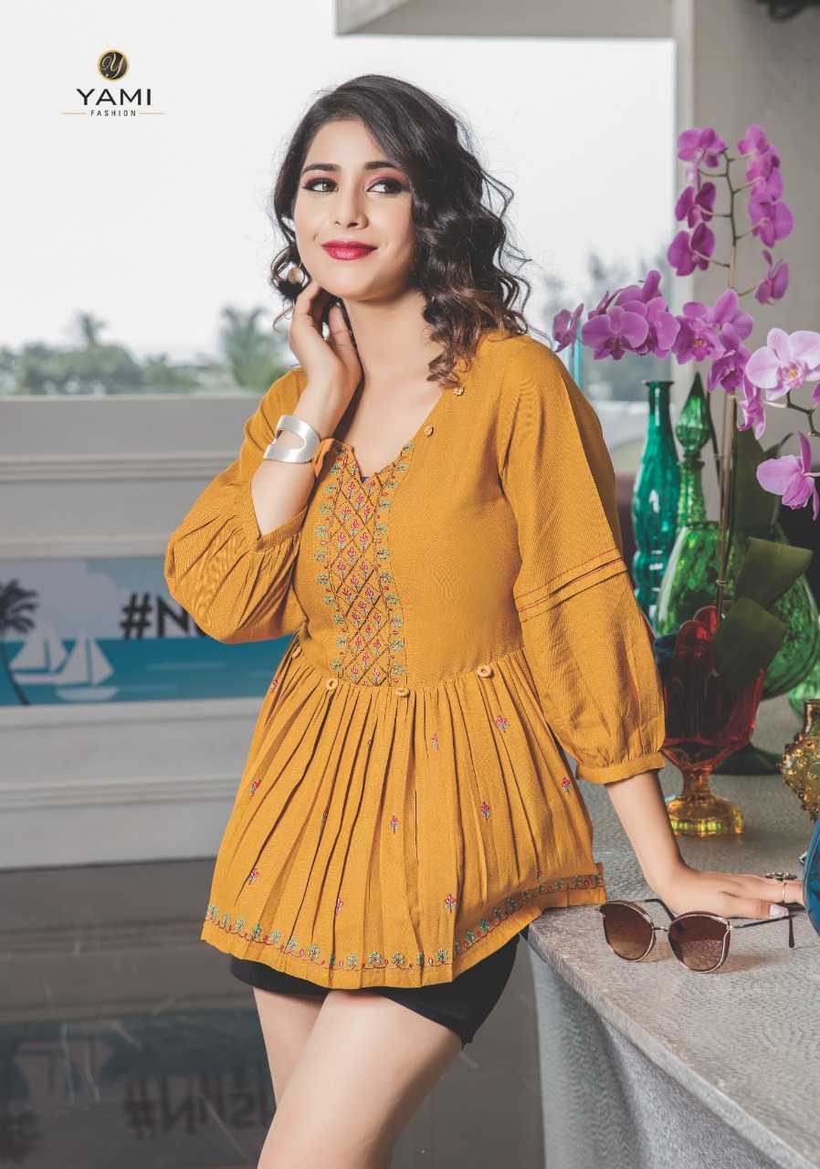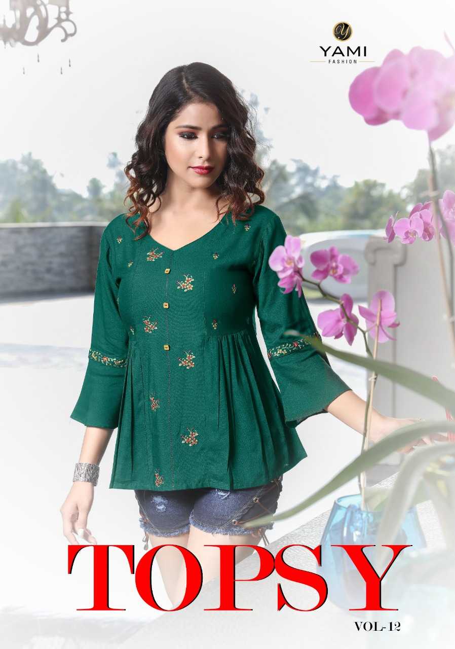 Yami Fashion Has Launched New Catalogue Short Top" Topsy Vol -12" Name- Topsy Vol-12 Pce- 7 Fabrics-Rayon Base Weaved + Embroidery Work Size- Xl 42, Rate- 300/- Ready to dispatch |