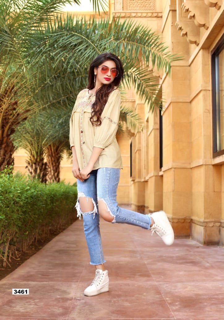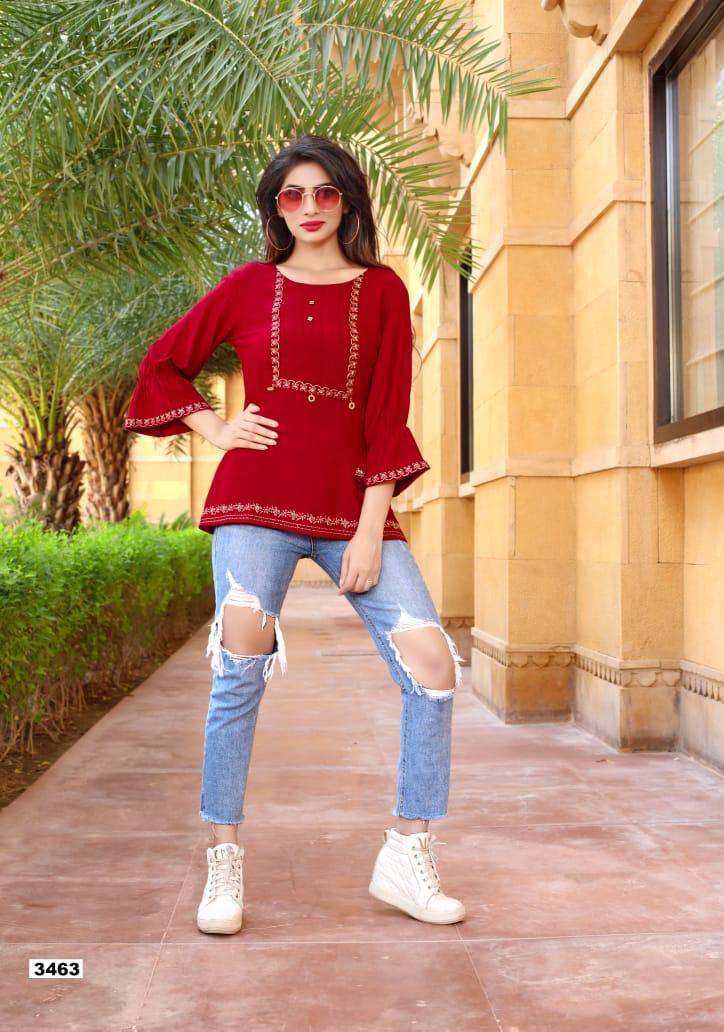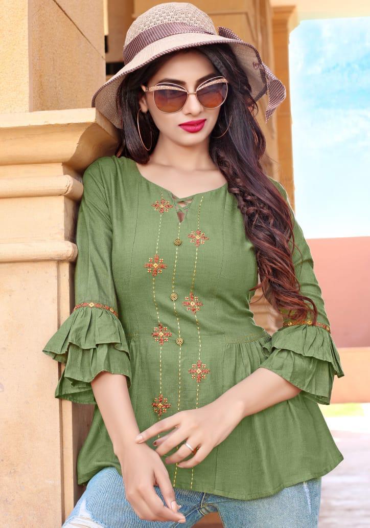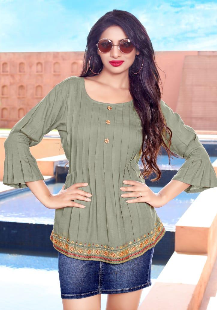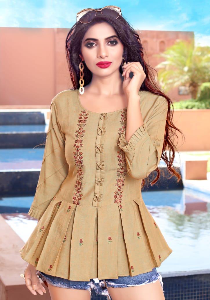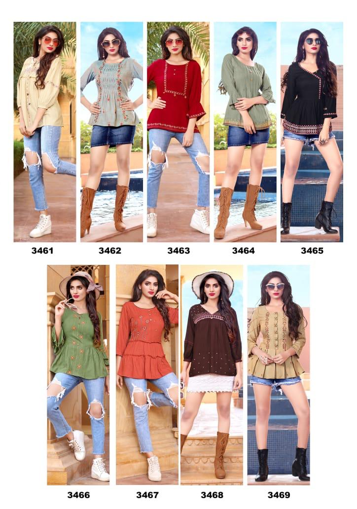 Yami Fashion Has Launched new Catalogue Short Top" Topsy Vol -9" Name- Topsy Vol-9 Pce-9 Fabrics-Rayon Base weaved + Embroidery Work Size- S36, M38,L40, XL42, Rate-395/- Set To set . GST 5 Percent Extra. Delivery from today |