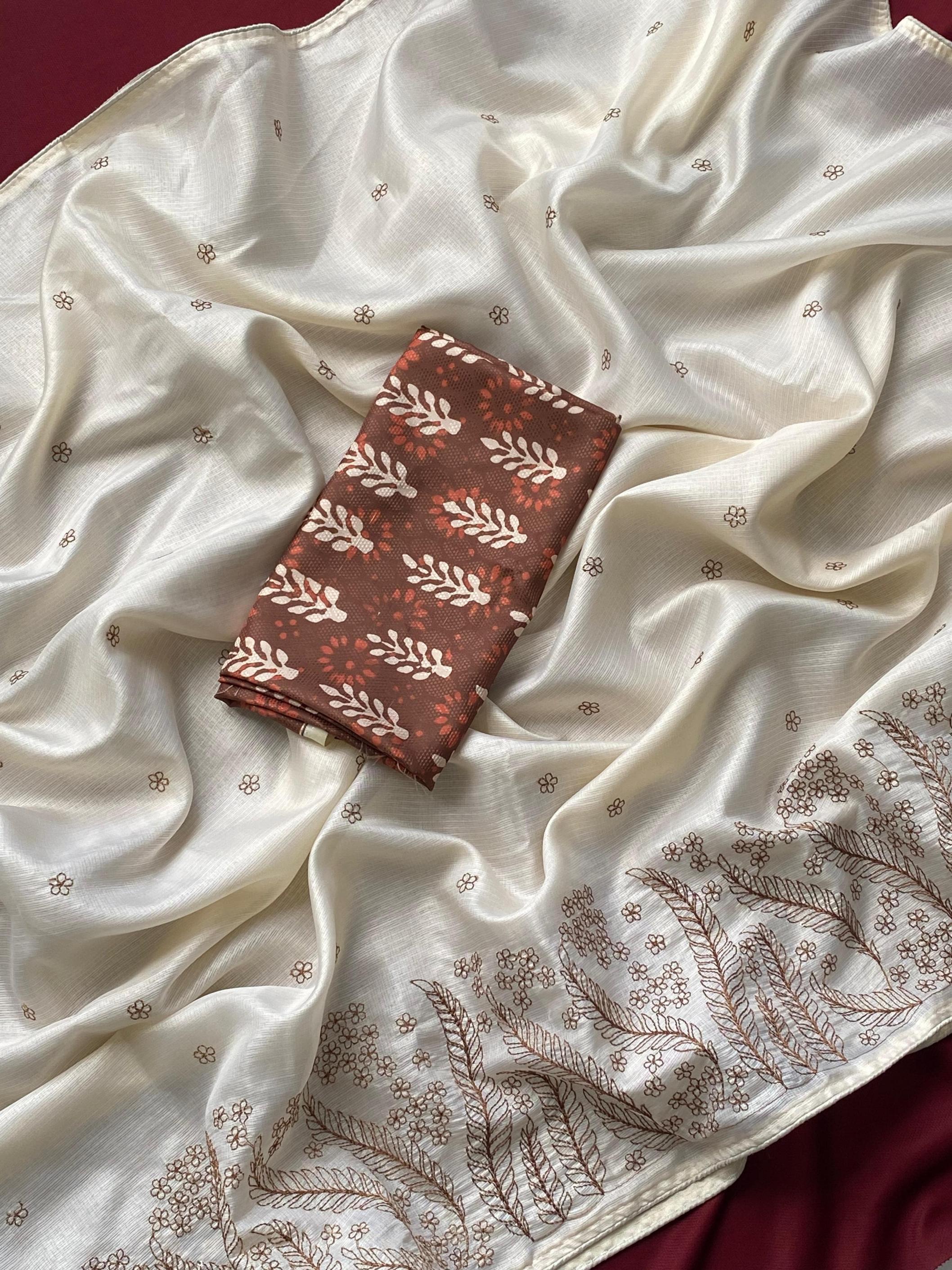 FRESH ARRIVAL❤️ Catalog: Yashvi Pure kota silk saree with beautiful embroidory all over saree with panel work and all over buttis Teamed with beautiful contrast blouse with flower print Price :- 999/- |