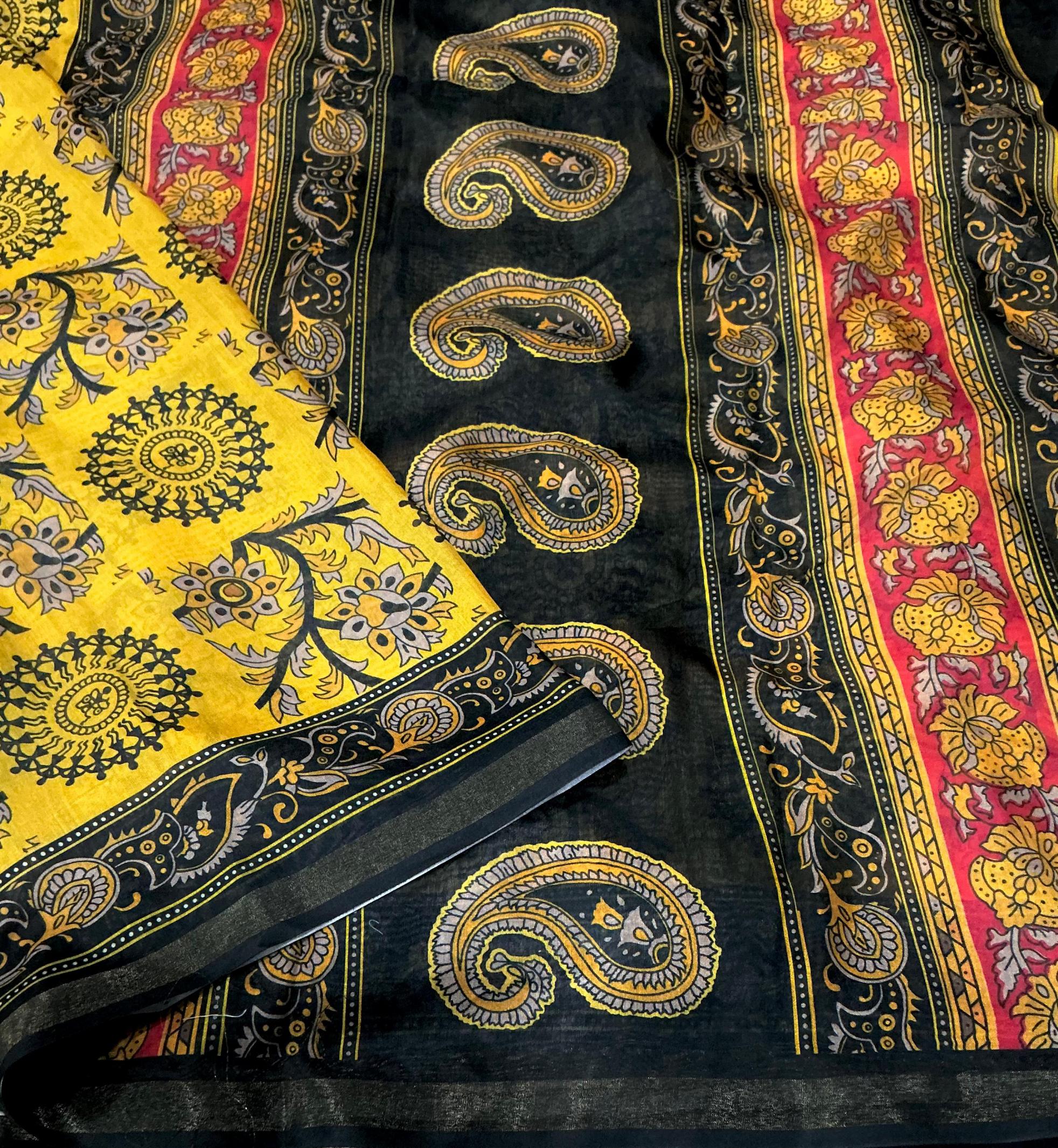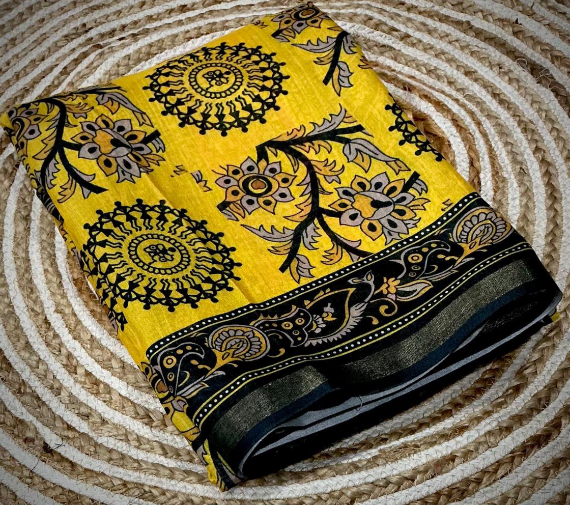 NEW ARRIVALS Trending Digital Prints Sarees from AND. AND - Yellow Forest Quality- Soft & Smooth Cotton with Digital Print Saree with Golden Zari Border. Blouse - Running Contrast Blouse. Rate - 550+Ship Full length 6.30 meters. Top quality |