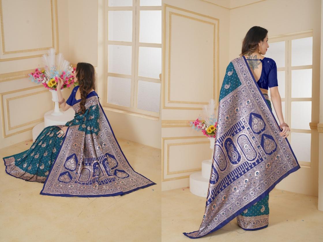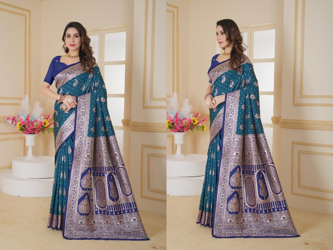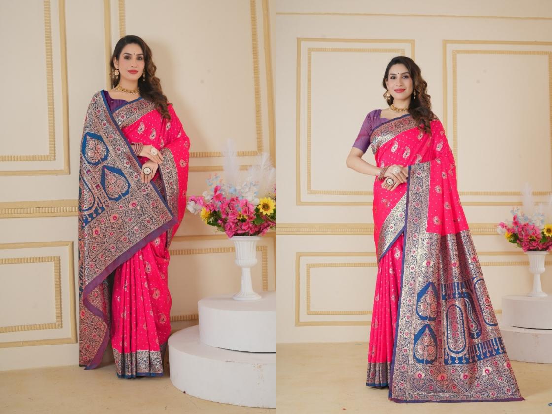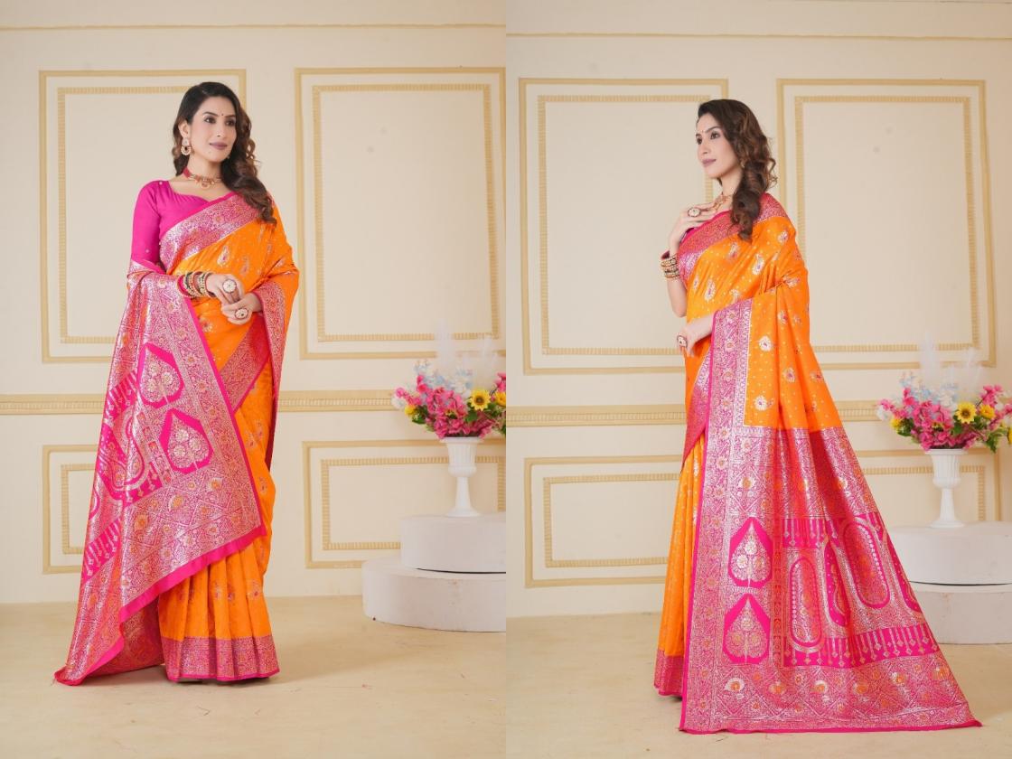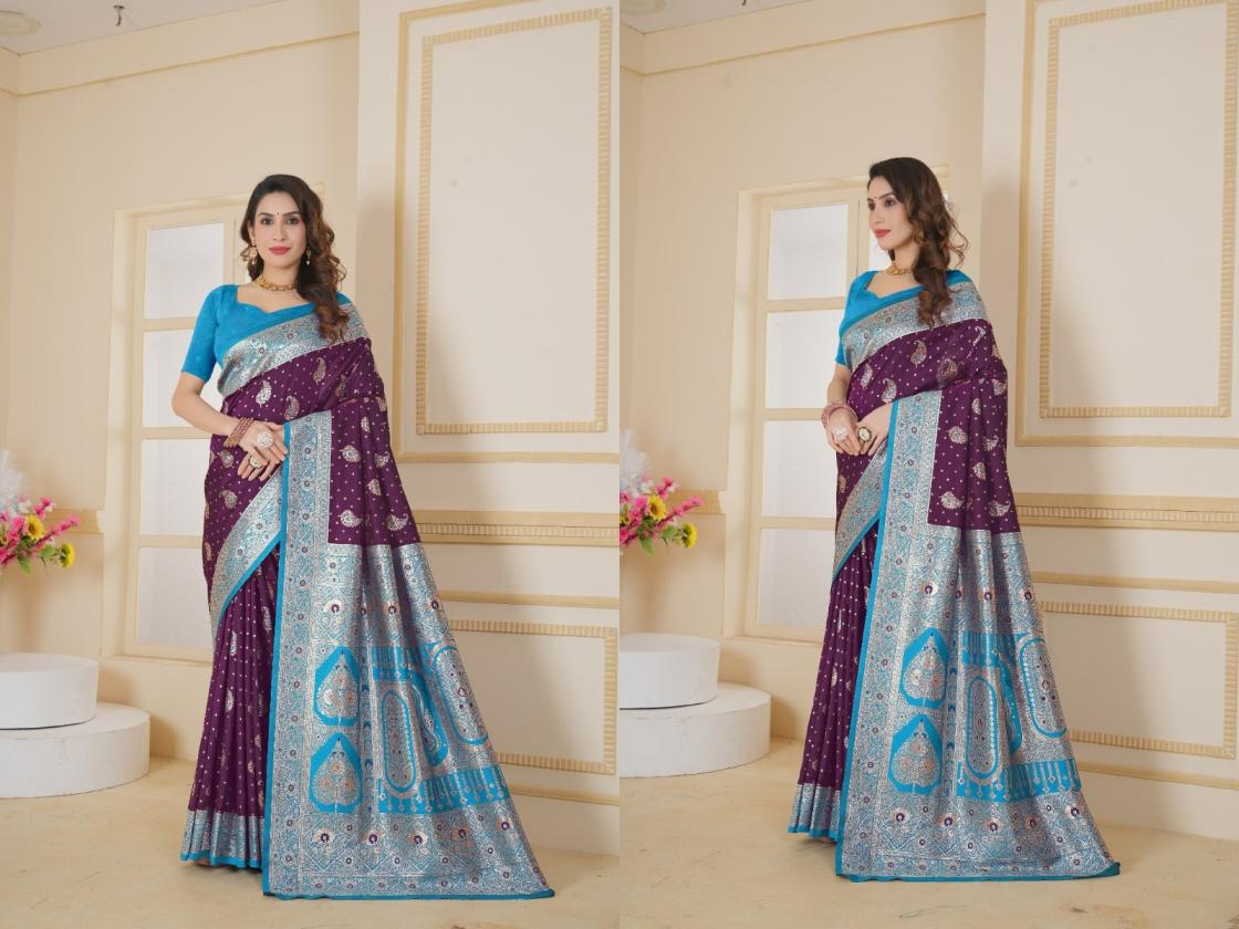 Catalog: Yeola Paithani-9770(Colours) Saree Fabric Detail : Soft Silk Weaving Saree With Banarasi Zari With Contarast Border Blouse : Contrast Jacquard Rate : 995/- +5 %Gst Style : Festive Wear, Wedding Wear |