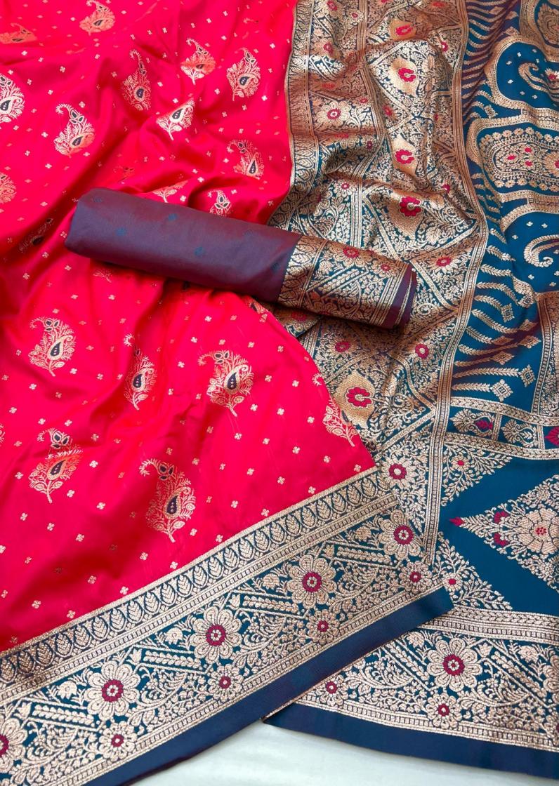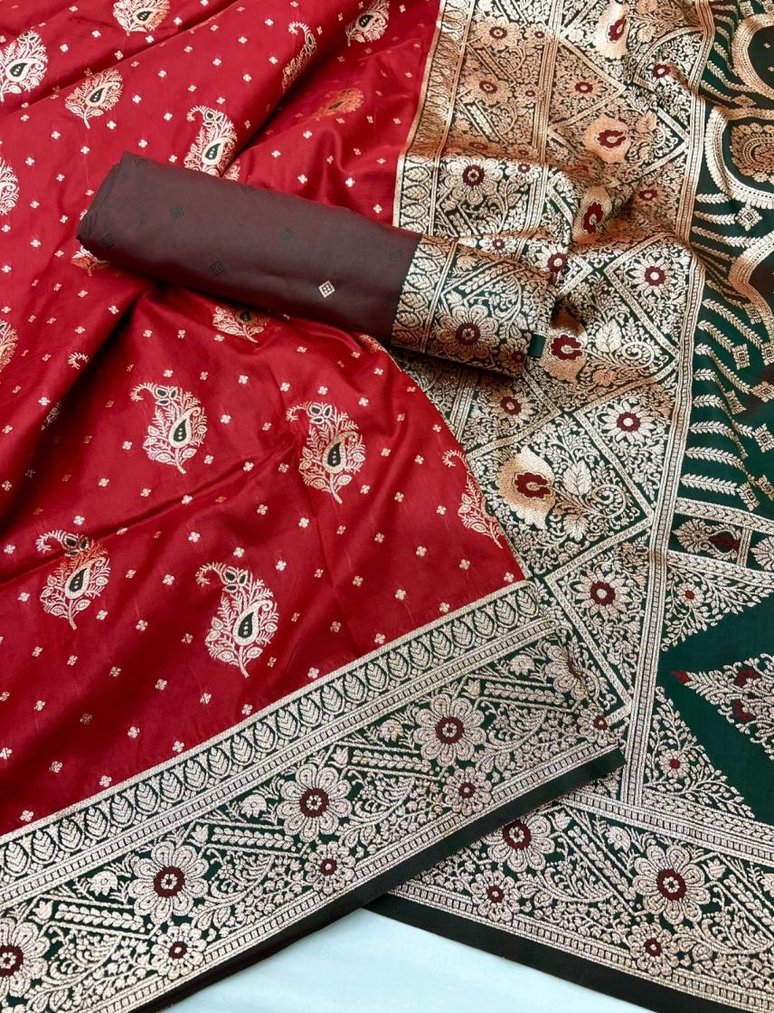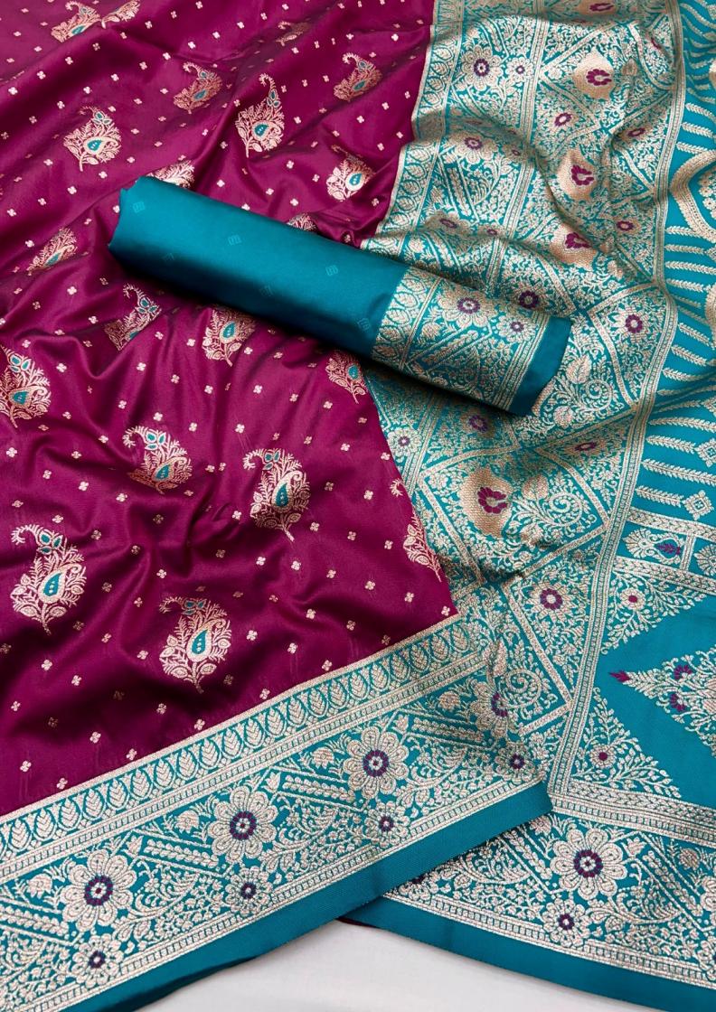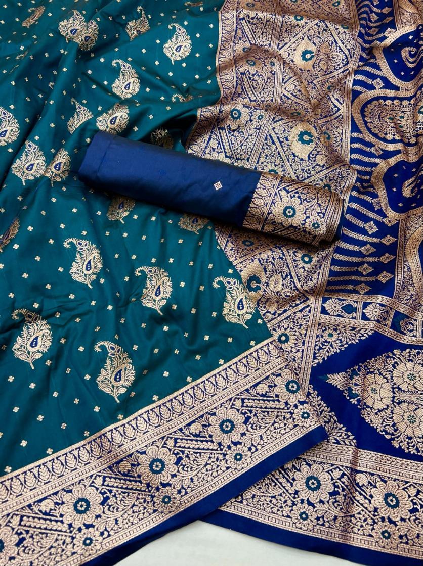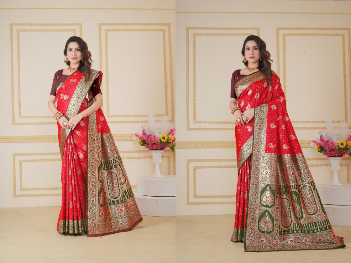 Catalog: Yeola Paithani-9770(Colours) Saree Fabric Detail : Soft Silk Weaving Saree With Banarasi Zari With Contarast Border Blouse : Contrast Jacquard Rate : 995/- +5 %Gst Style : Festive Wear, Wedding Wear |