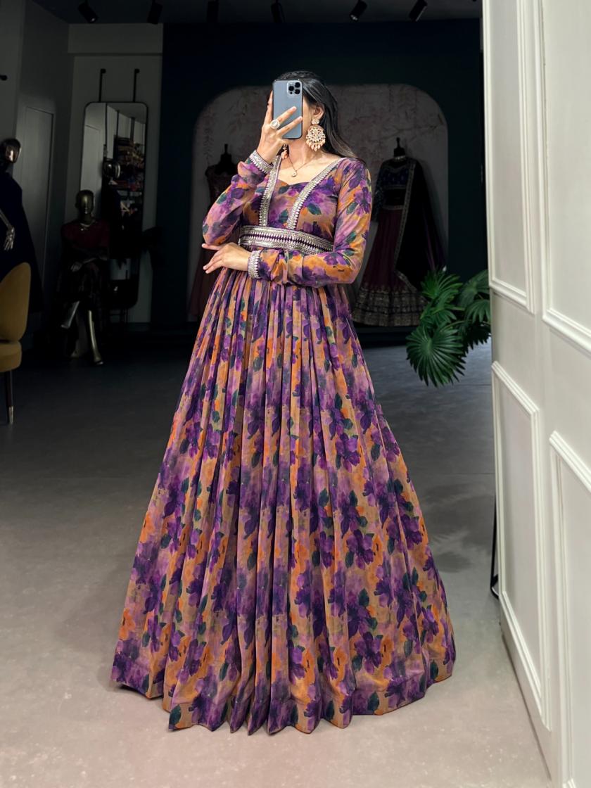 ynf5019 georgette stylish look floral printed fully stitch gown online
