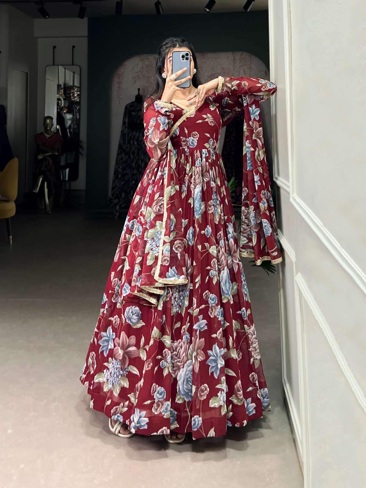 ynf5103 marbel floral print readymade stylish gown wholesaler