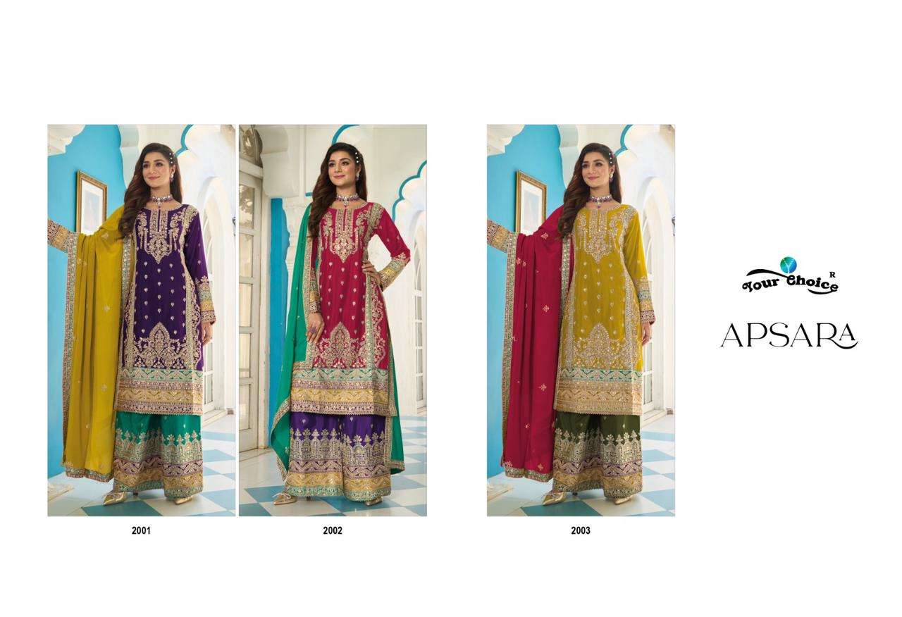 “Your choice”®️ Catlog ———APSARA Fabrics—👕Semi pure Chinon Rate : 2995/- Des ————3 pcs only Notes ——Fully Readymade Dishpatching- monday |