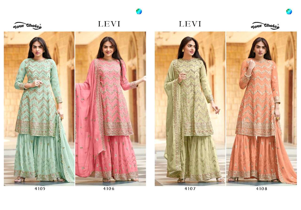 “Your choice”®️ Catlog——-LEVI Fabrics—👕Heavy georgette Rate——-2395/- Notes——-readymade with Des————4 pcs only |