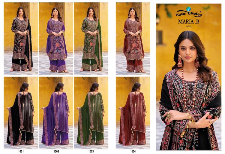 “Your choice”®️ Catlog ——-*Maria.B*Gold Fabricss—👚Semi pure Chinon Rate ————2999/- Des—————-4 pcs Notes————fully readymade |