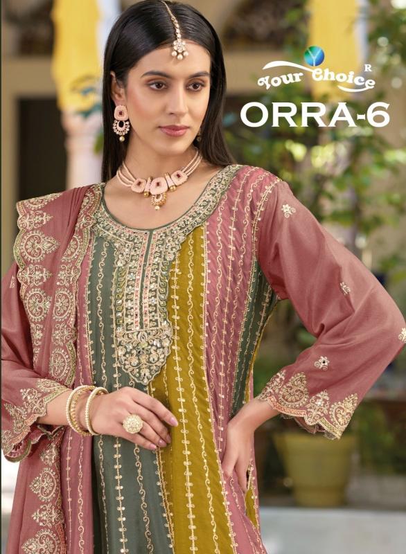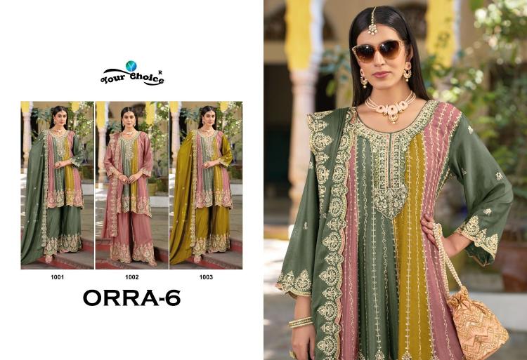 your choice orra vol 6 readymade exclusive design chinon plazzo suits