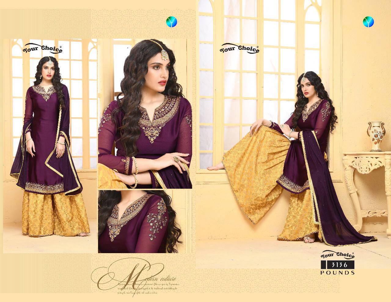 Your Choice Present Pounds Satin Georgette Sharara Style Heavy Salwar Suit