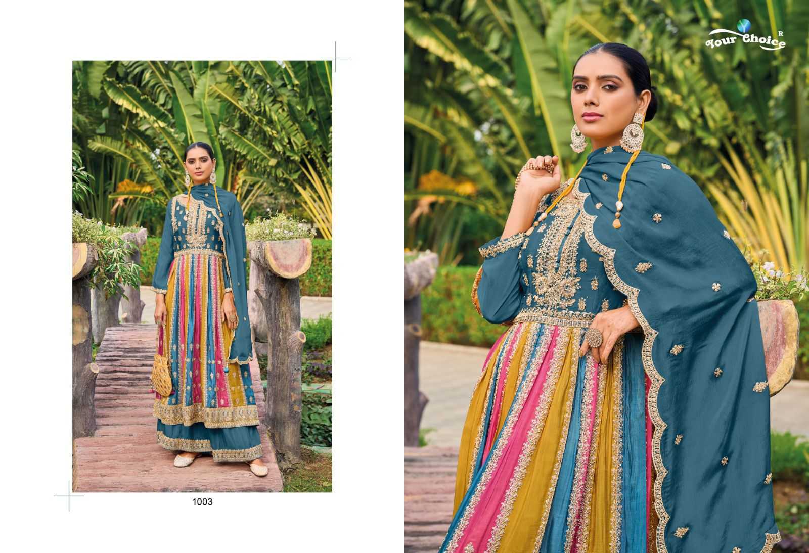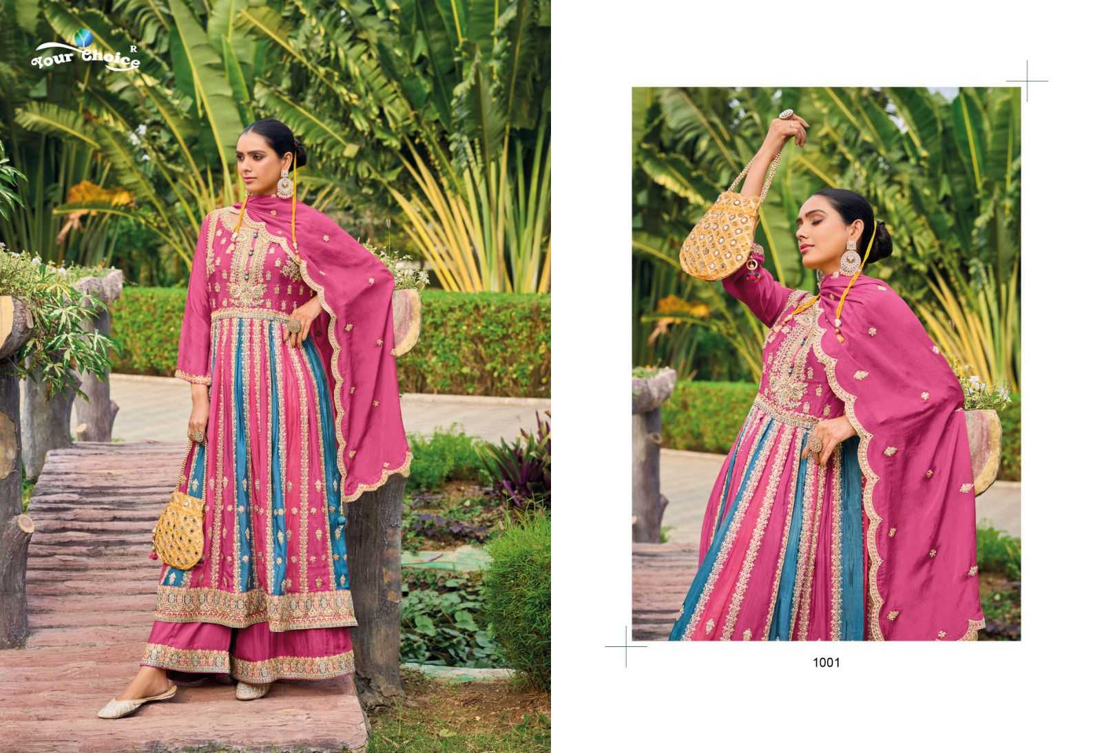 “Your choice”®️ Catlog ——-ONLY Fabrics-👕semi pure Chinon Rate ———2795/- Des———-3 pcs Notes ——-Fully Readymade Dishpatching-monday |