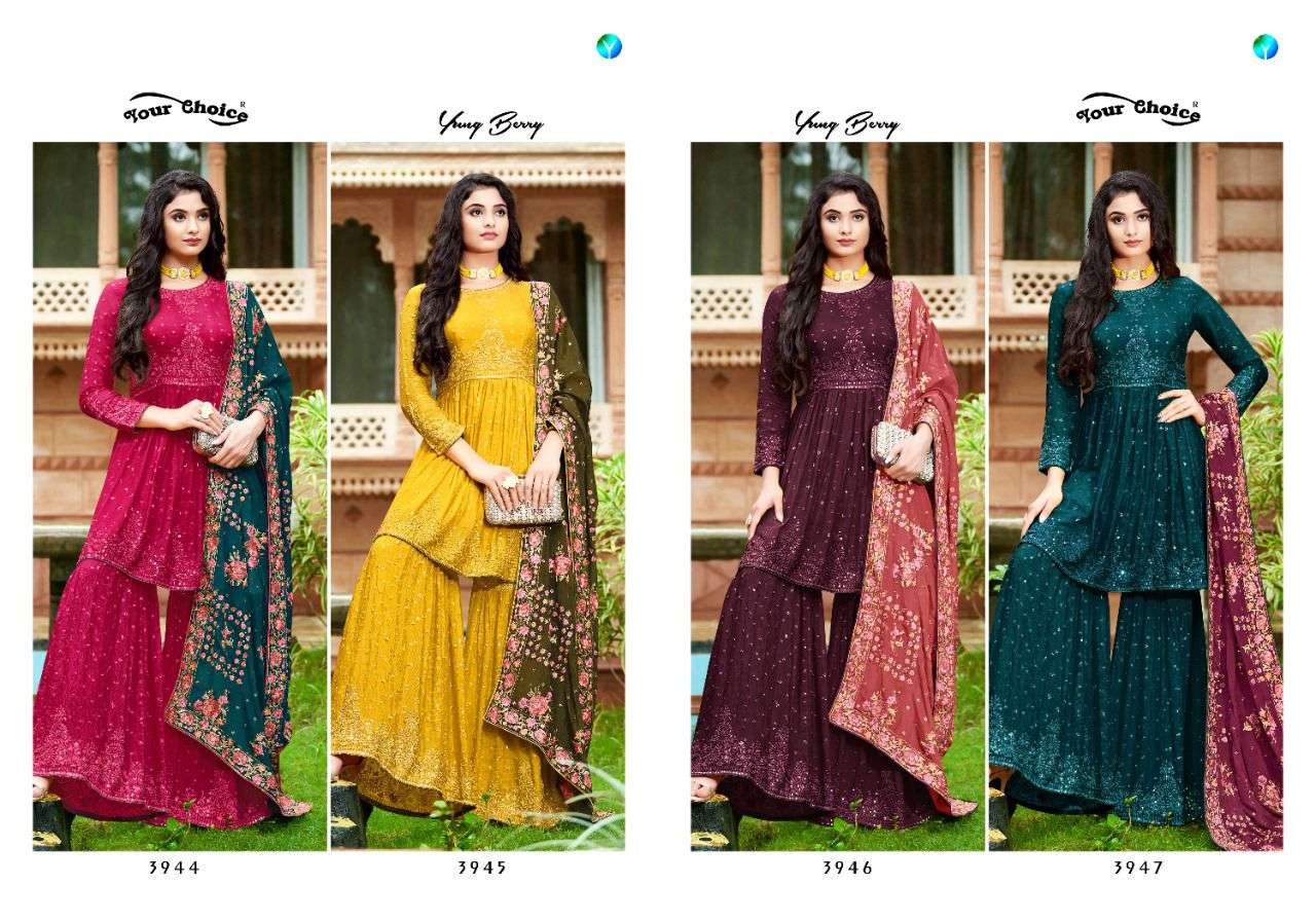 “Your choice”®️ Catlog———Young berry Fabrics——👕Heavy Chinon Rate———2495/- Des———-4 pcs Dishpatching-tomorrow |