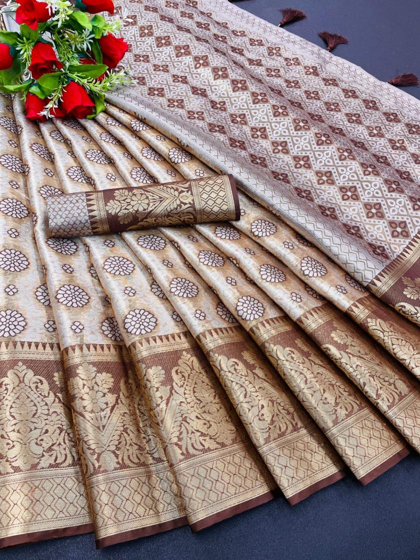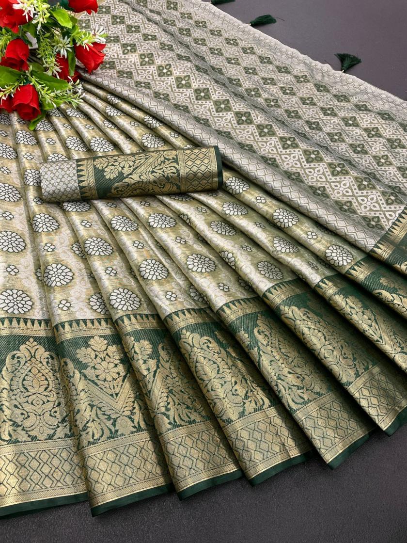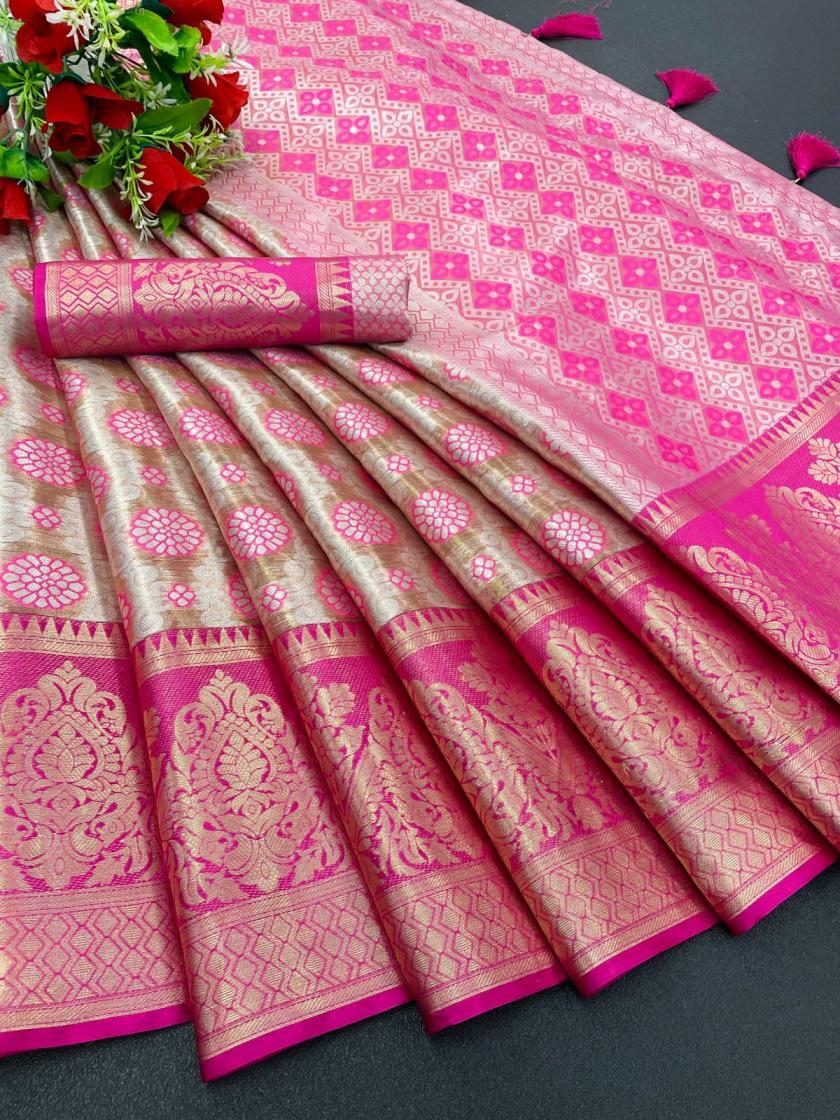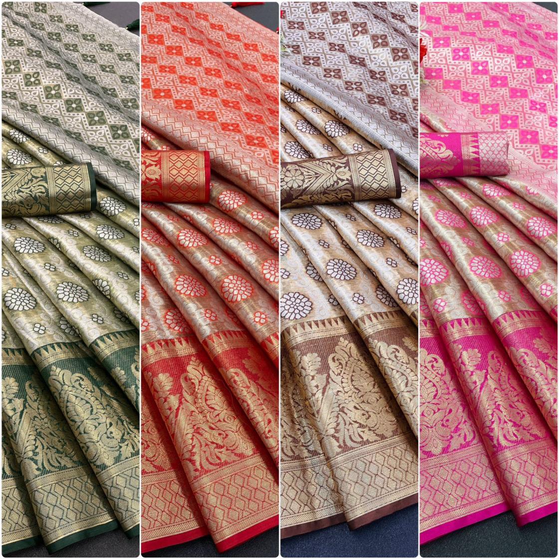 🆕 Dharmavaram Silk Saree 💯👜 Dharmavaram Saree has richly woven motifs of flora and fauna and designs inspired by the temple murals and paintings.In contrast, Dharmavaram sarees often have a plain or minimally designed pallu, allowing the focus to be on the border and body of the saree. 😘 Saree Blouse