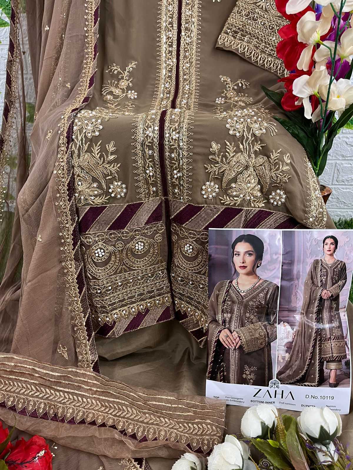 zaha 10119 fancy georgette with heavy embroidered work modern pakistani single design salwar suit